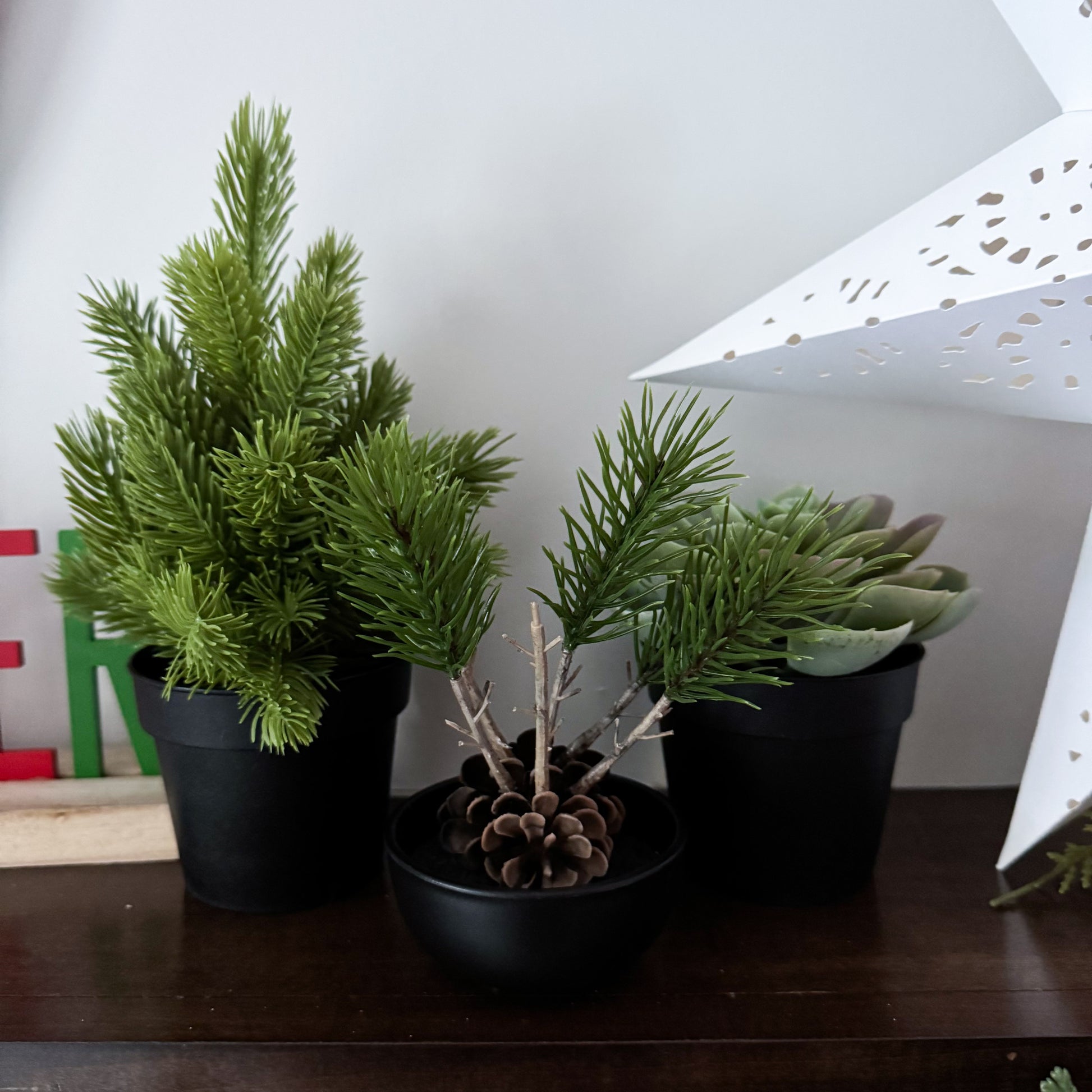This modern and simple Christmas themed basket with baby fir tree will make the perfect accessory to any space or to hold your special gifts.