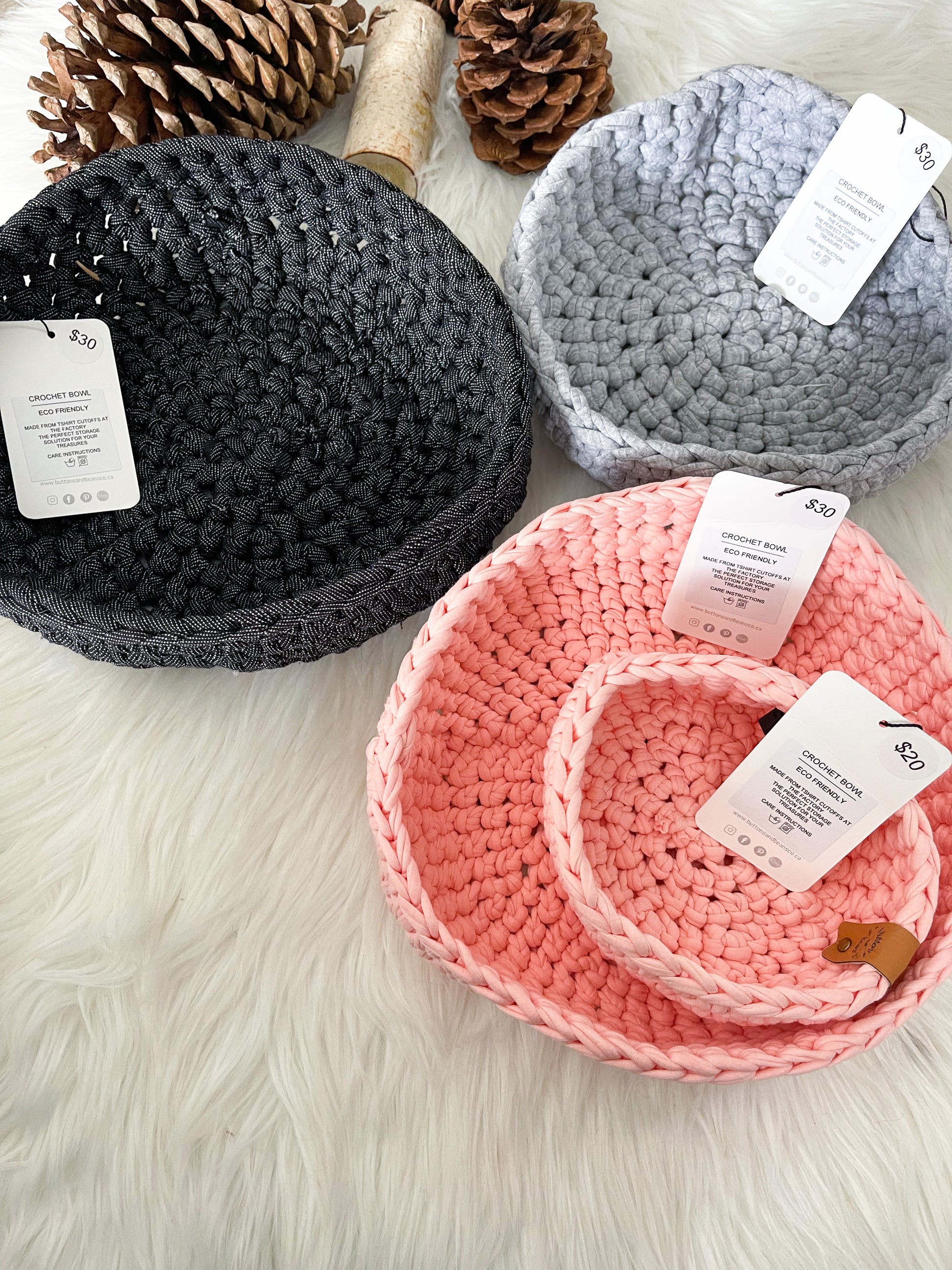 Use these baskets as plant or candles cozies, to store your favourite items or to help keep toys, winter gear and that entry way table clean and organized.