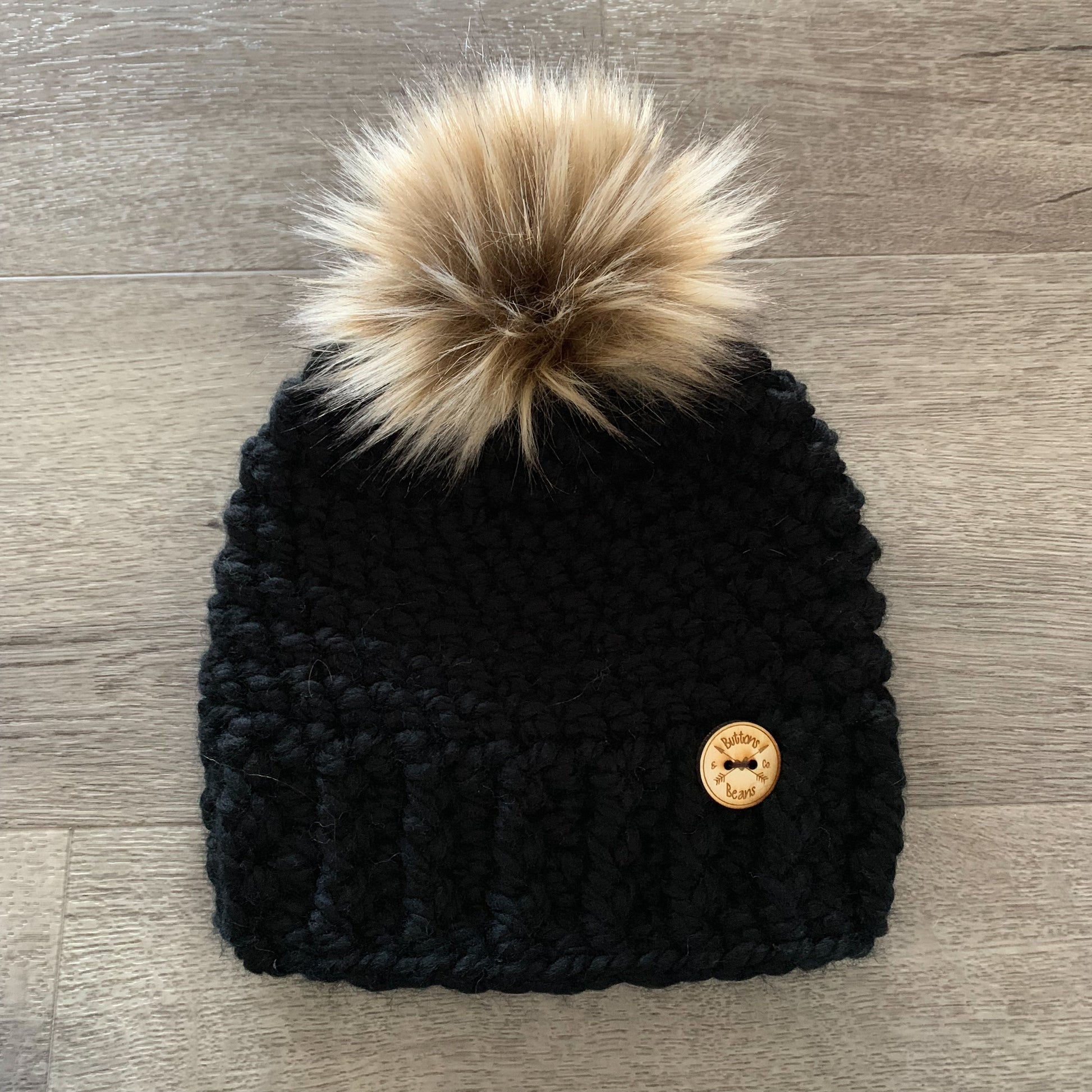 Black, 6-12 Months, super cute and cozy handmade crochet hat super soft and plush faux fur pompom and Infinity Scarf set. Scarf wraps twice and fits up to 12 years.