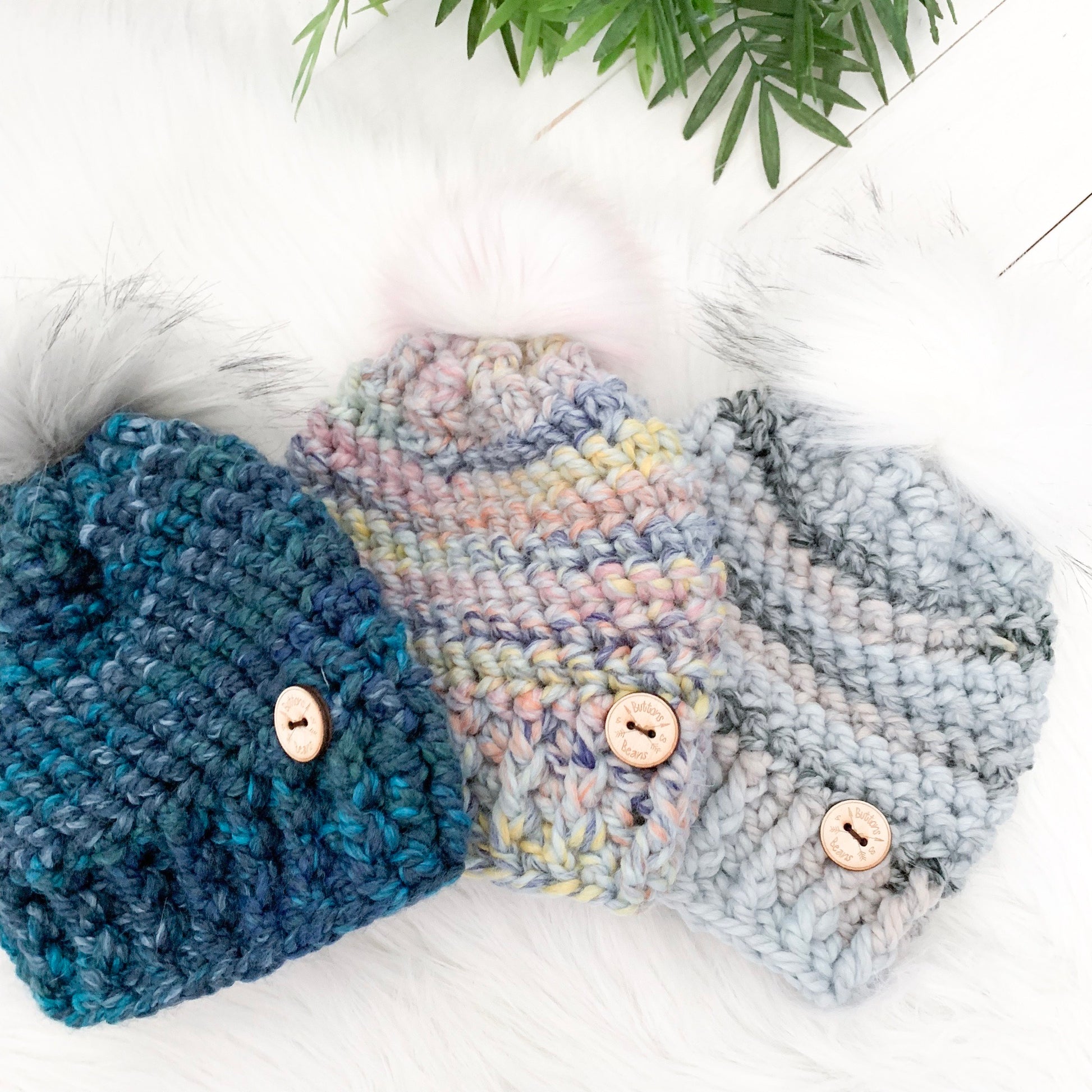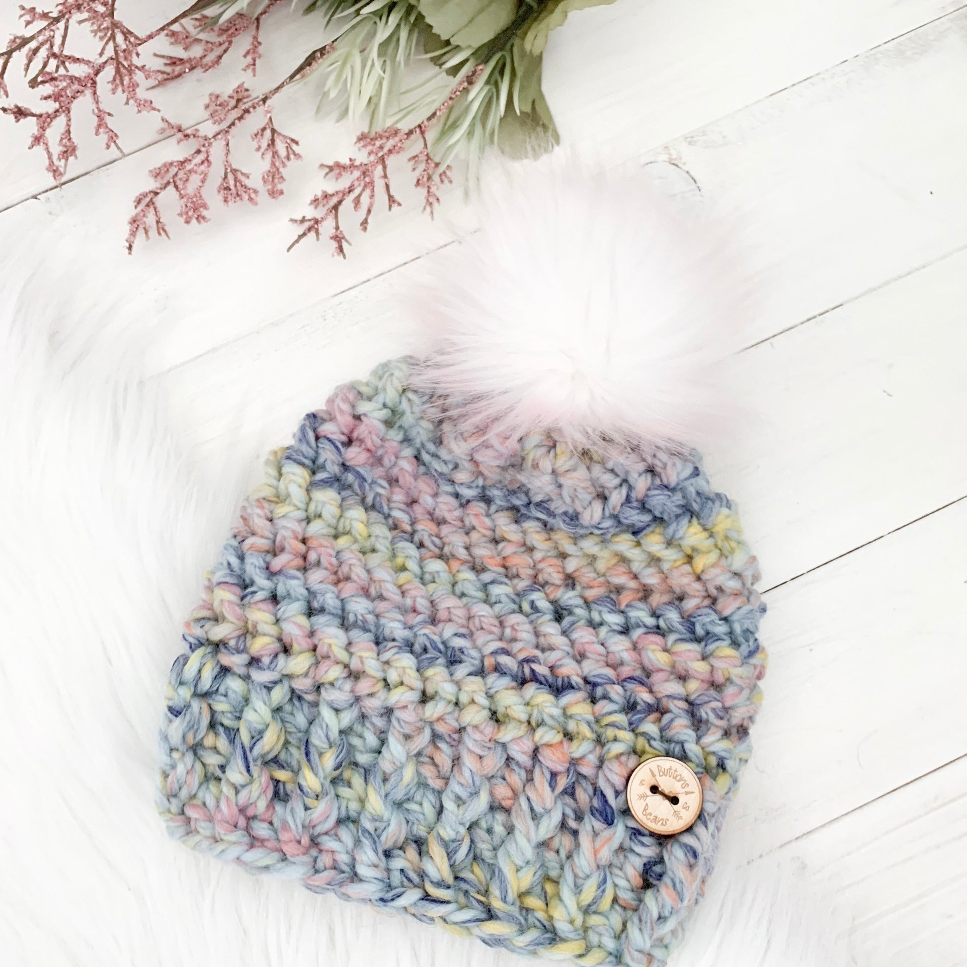 Rainbow pastel super cute and cozy handmade crochet hat with removable super soft and plush faux fur pompom. Warm, stylish and made to last. Customizable by choosing a pom pom or pompoms to reflect your style and personality.