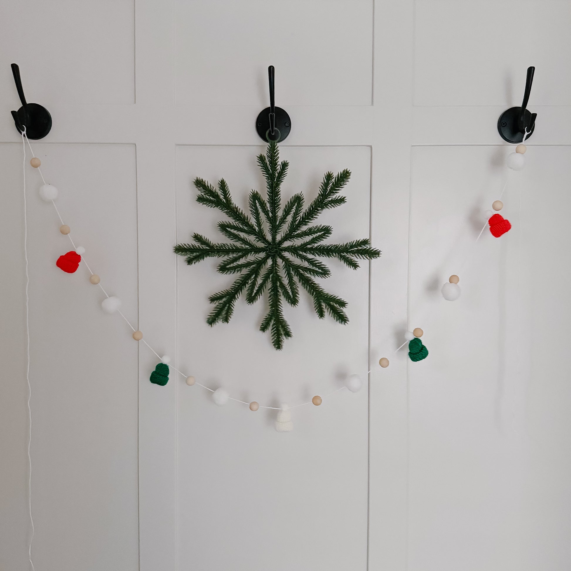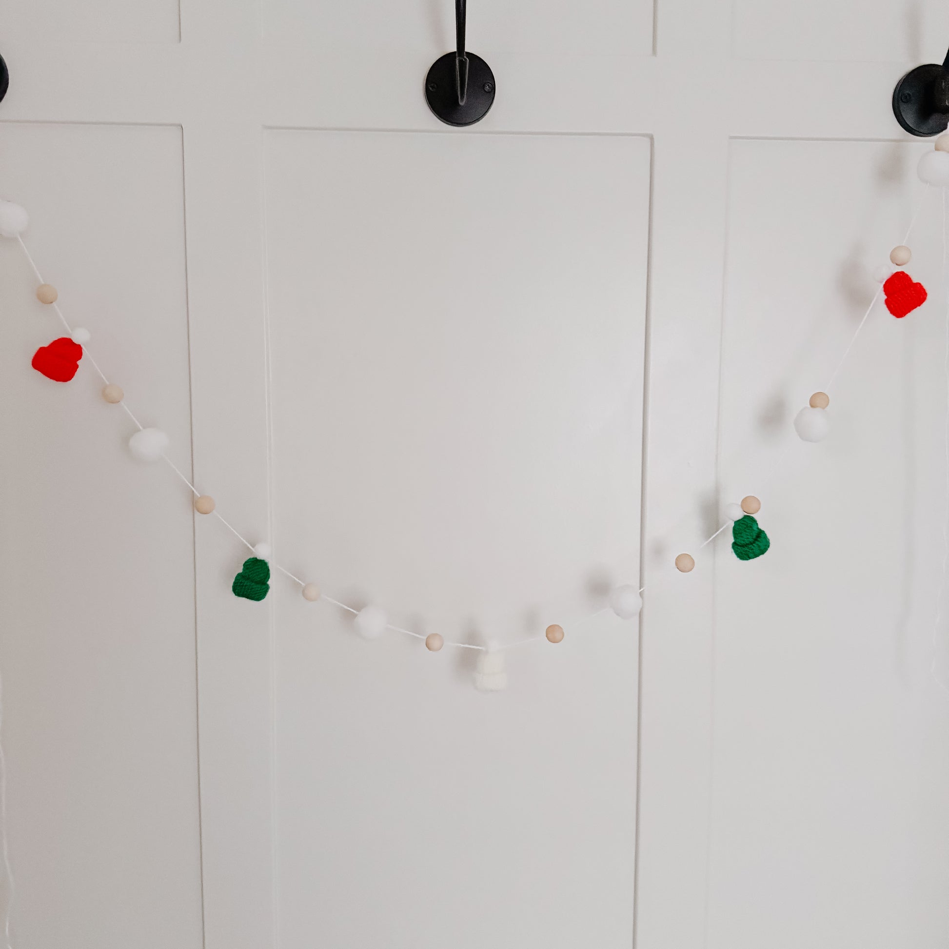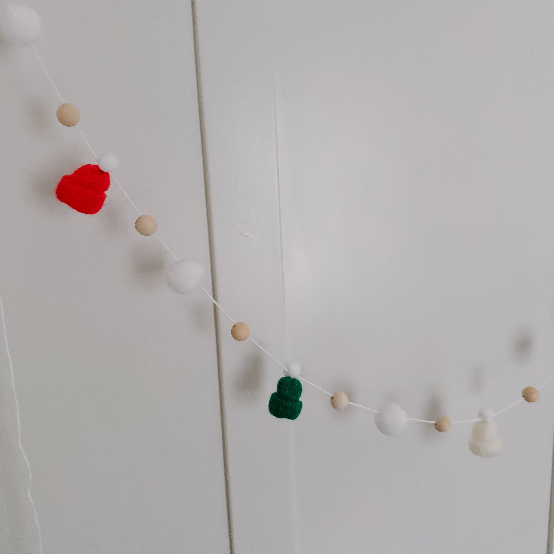 This modern and simple mini toque and wood bead garland will add the perfect touch to your decorating.
