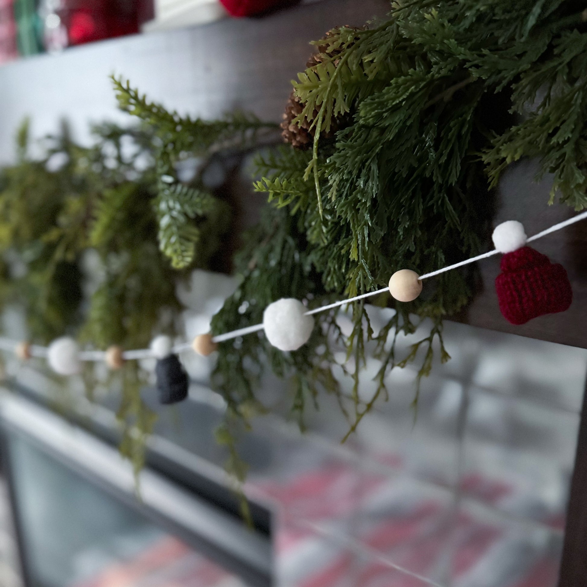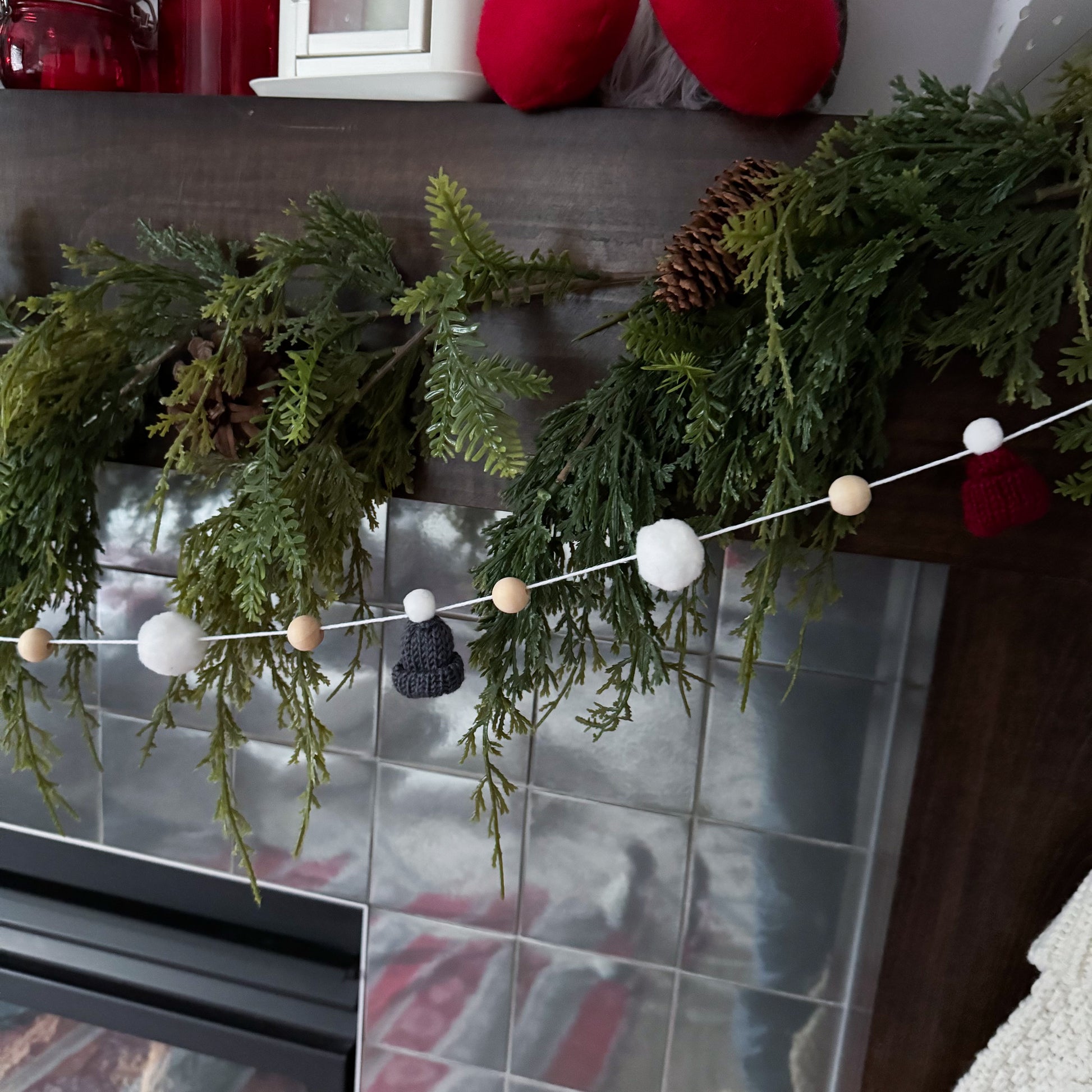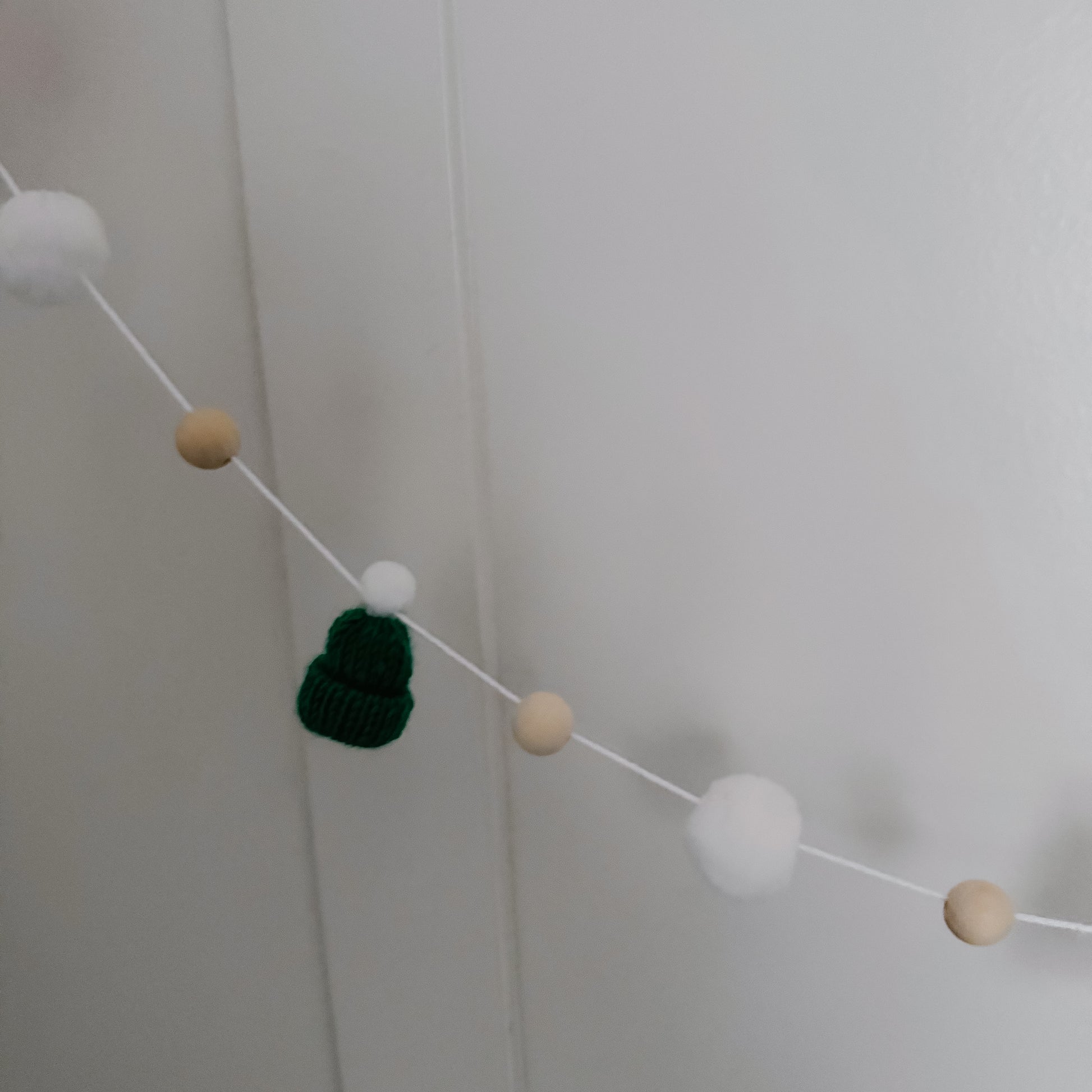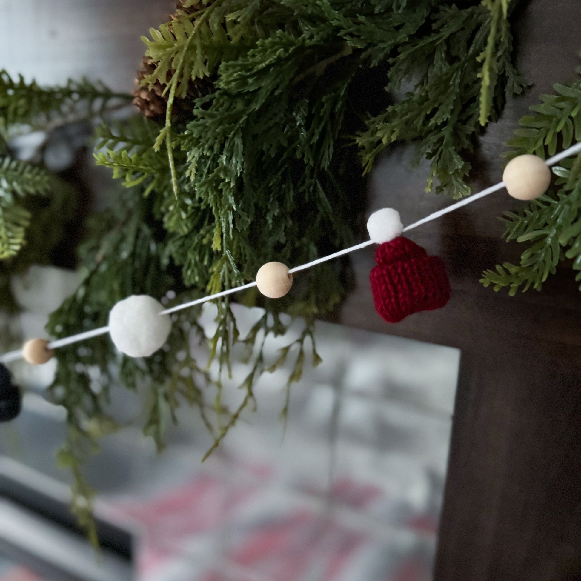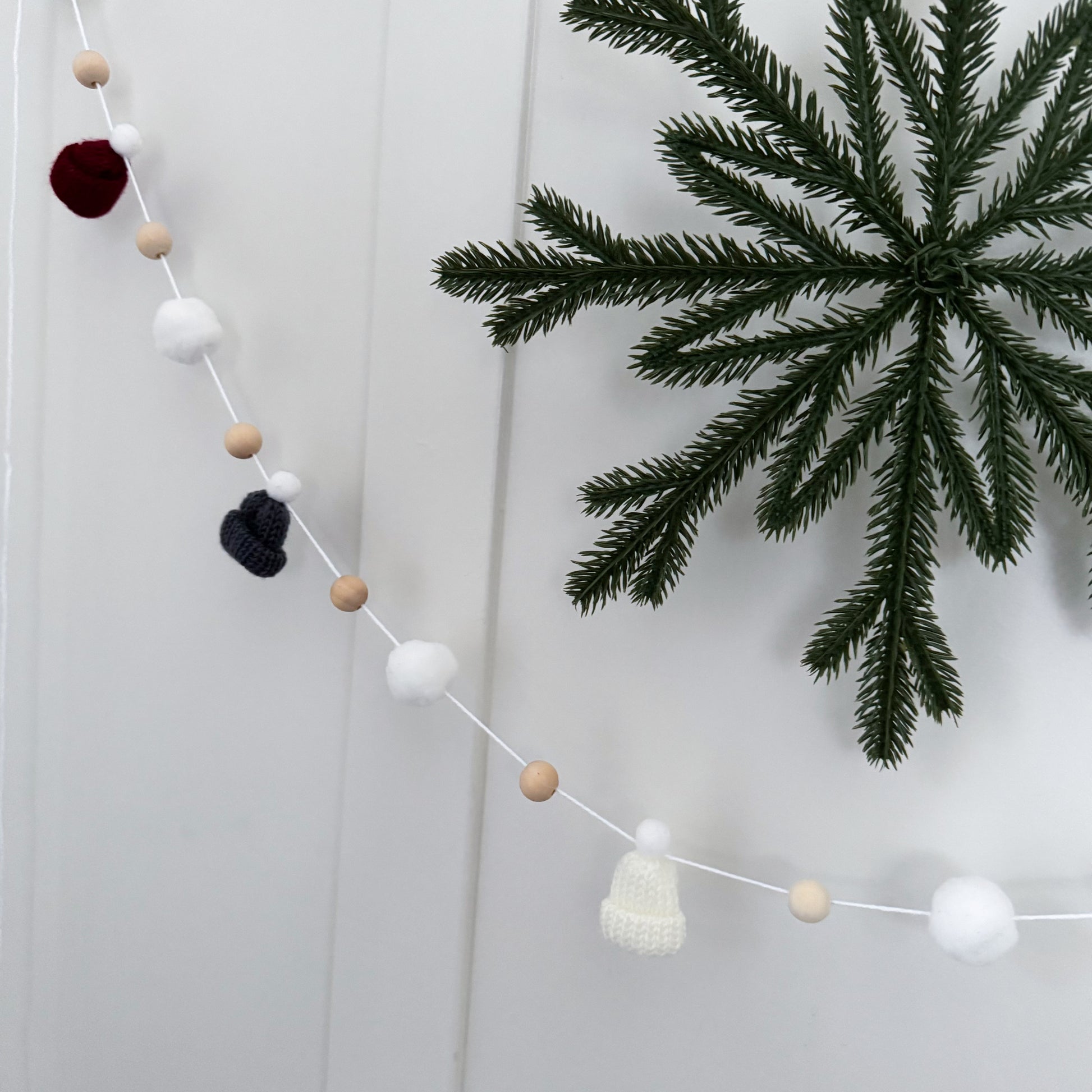 This modern and simple mini toque and wood bead garland will add the perfect touch to your decorating.