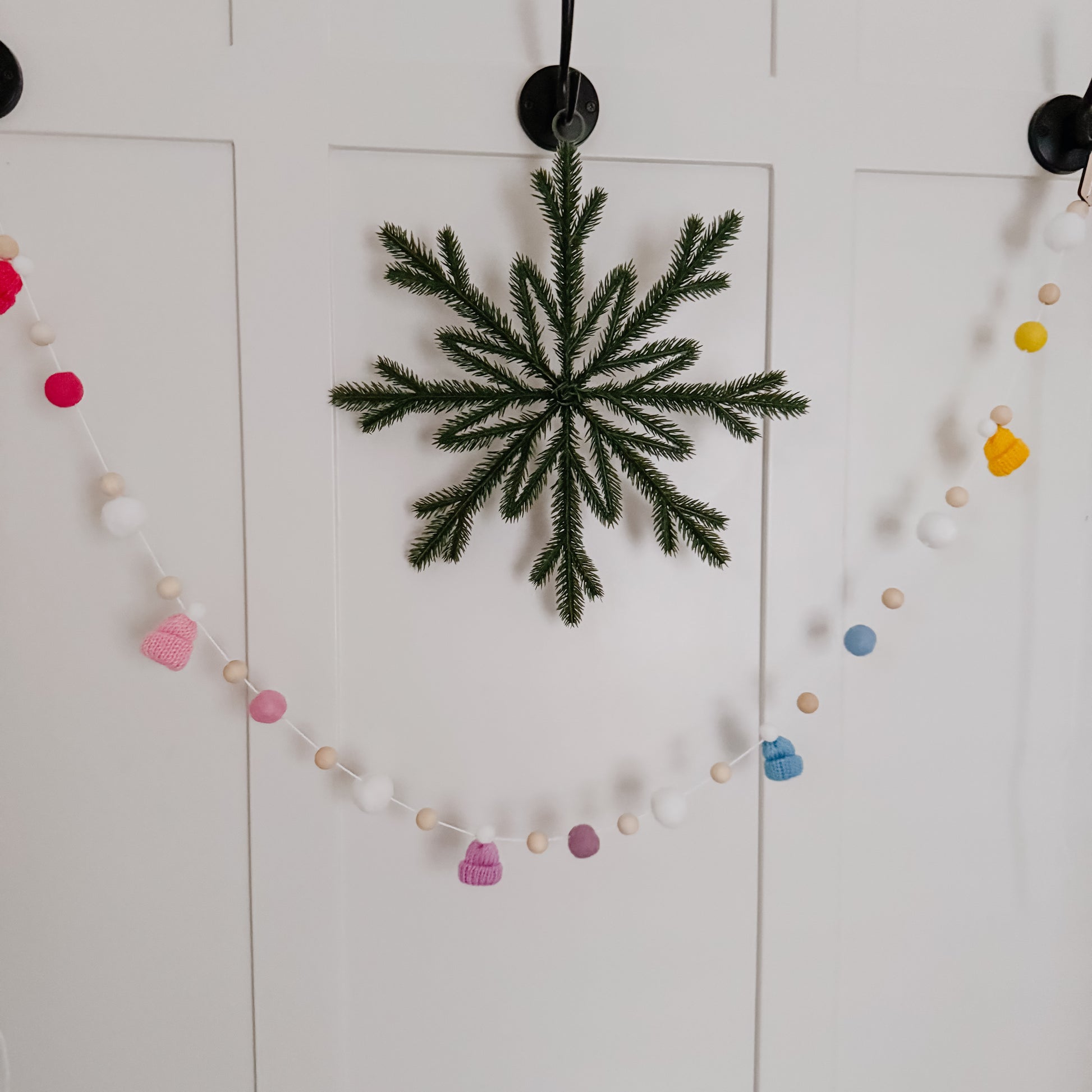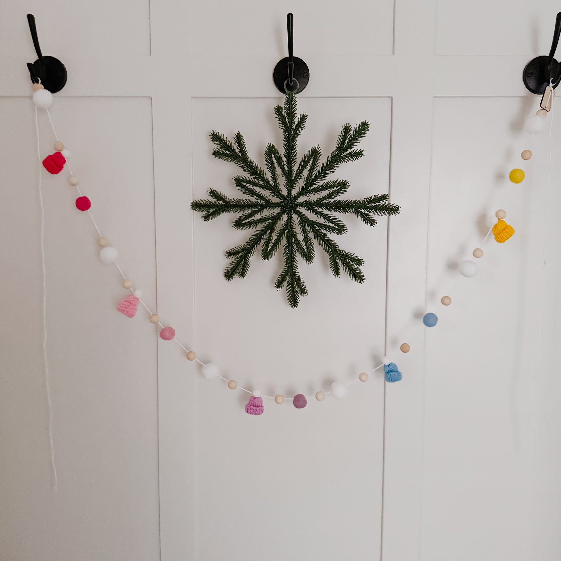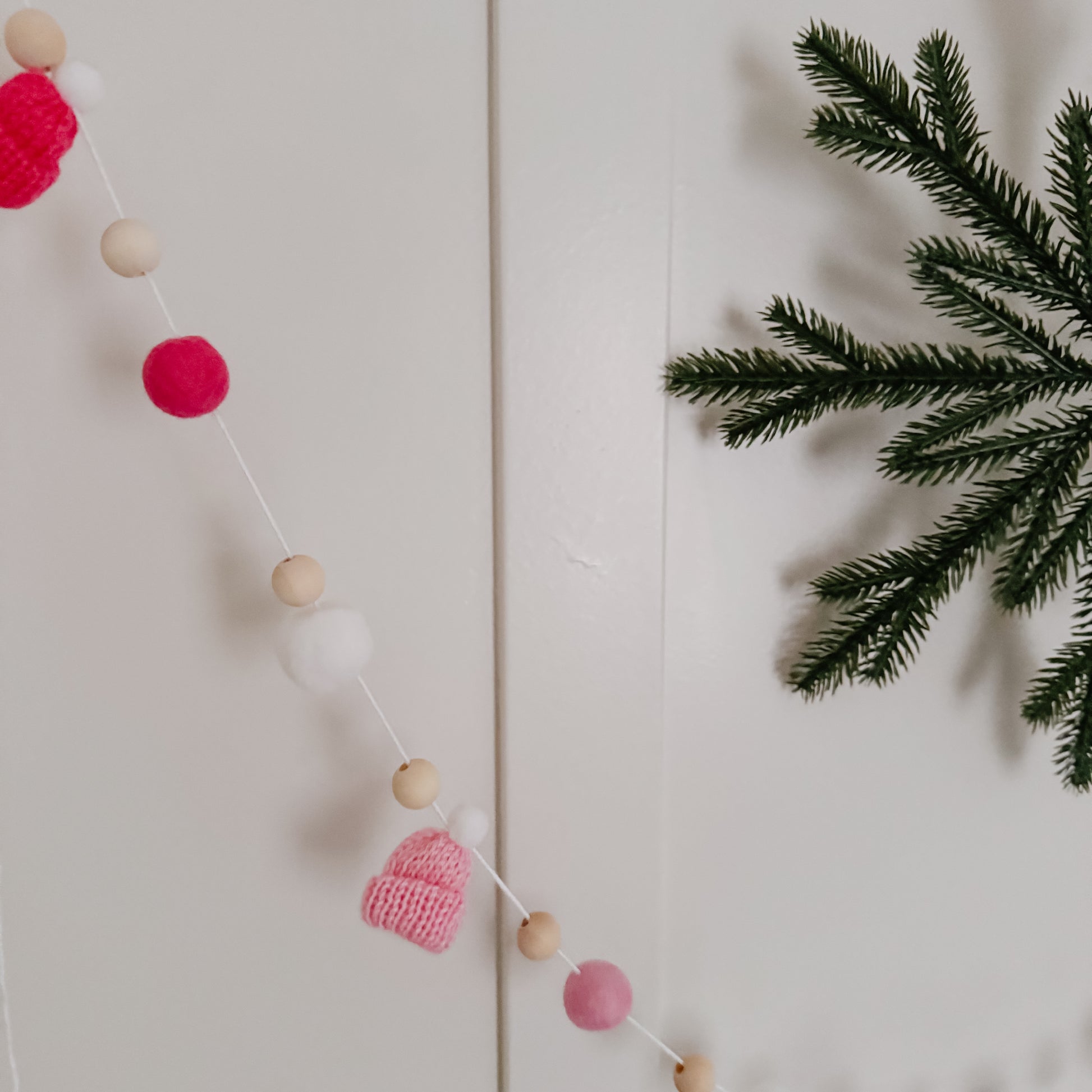 This modern and simple mini toque and wood bead garland will add the perfect touch to your decorating.