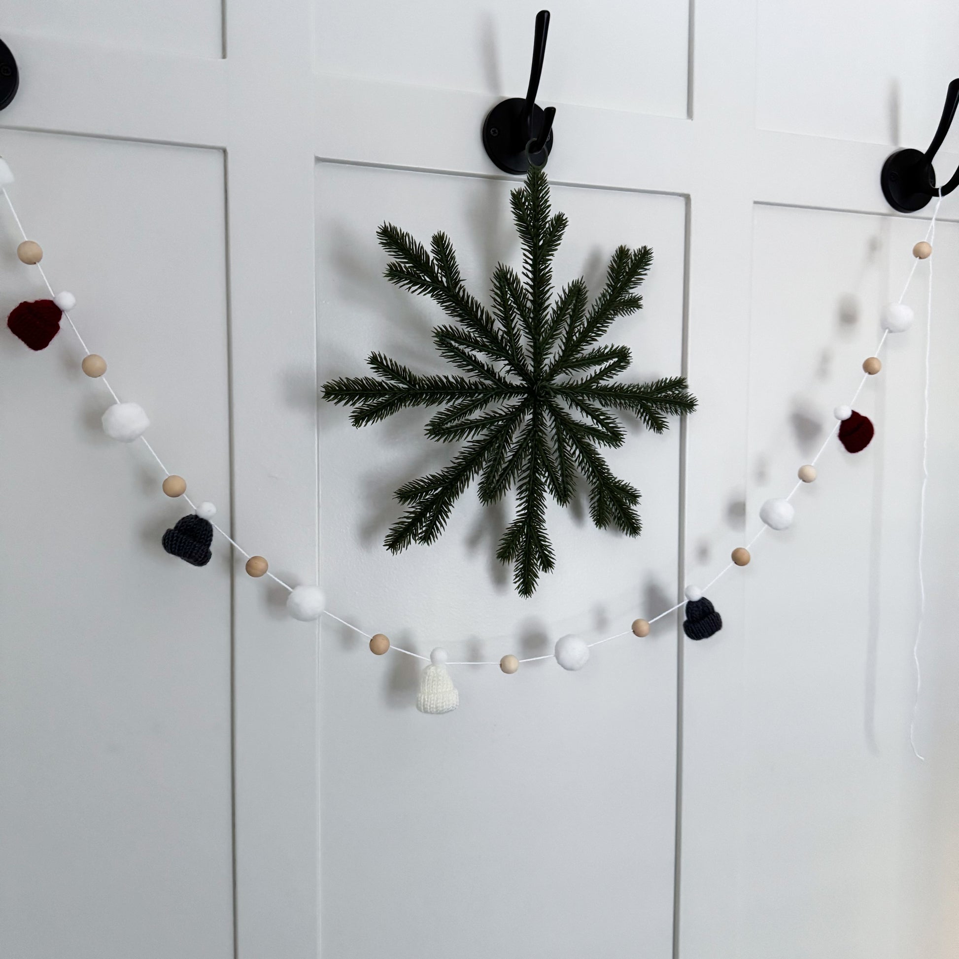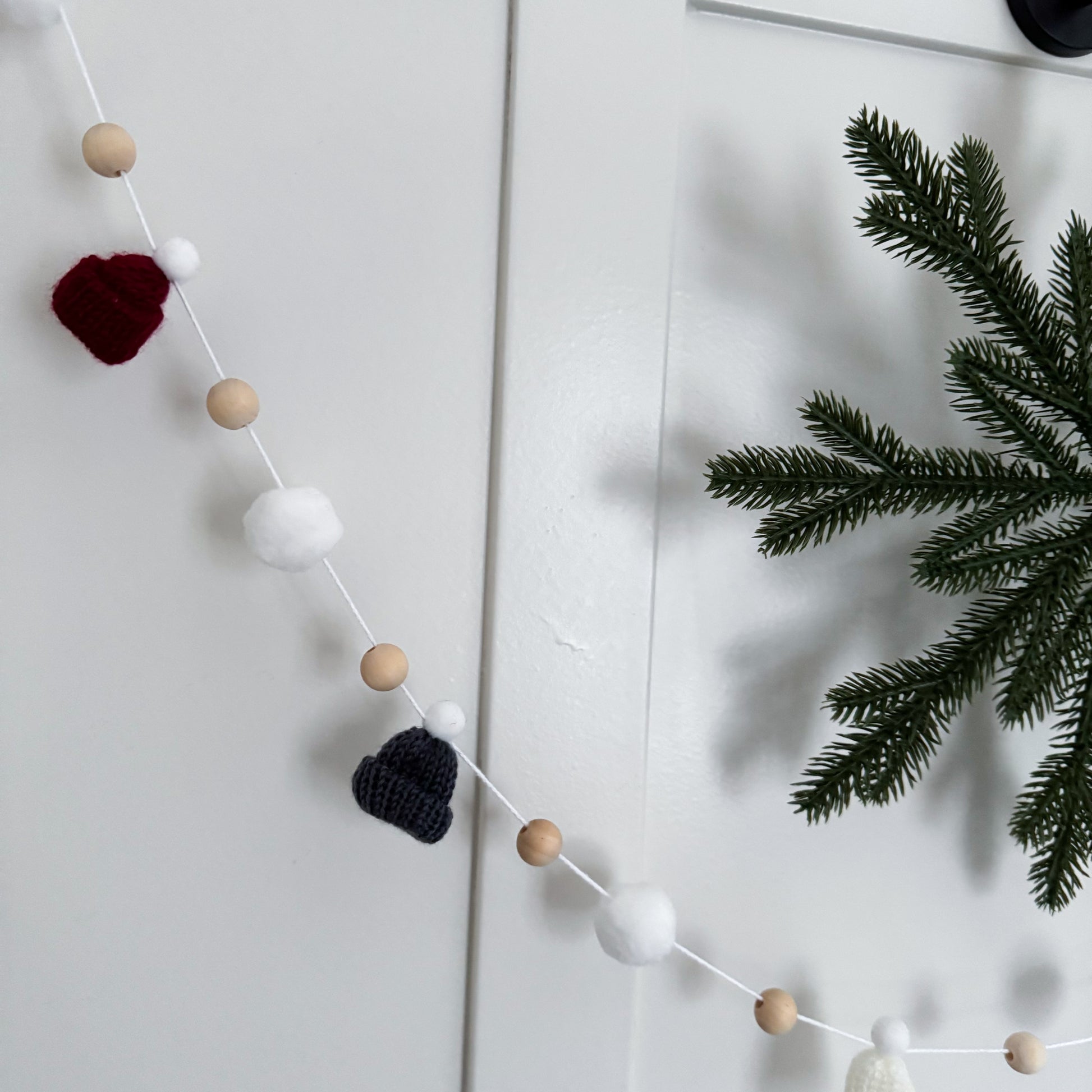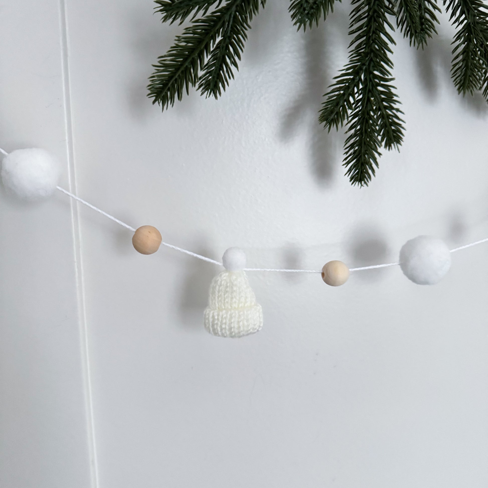 This modern and simple mini toque and wood bead garland will add the perfect touch to your decorating.