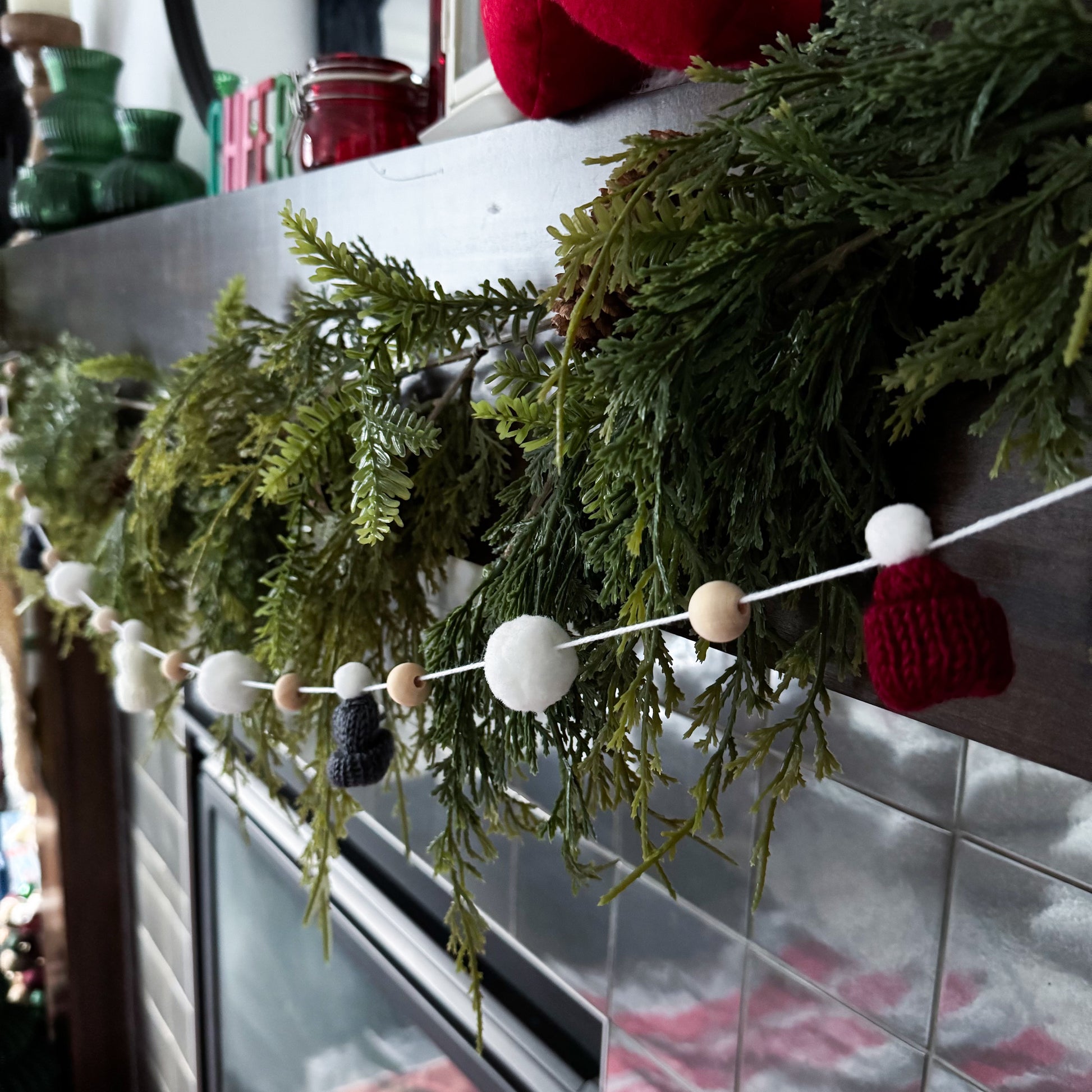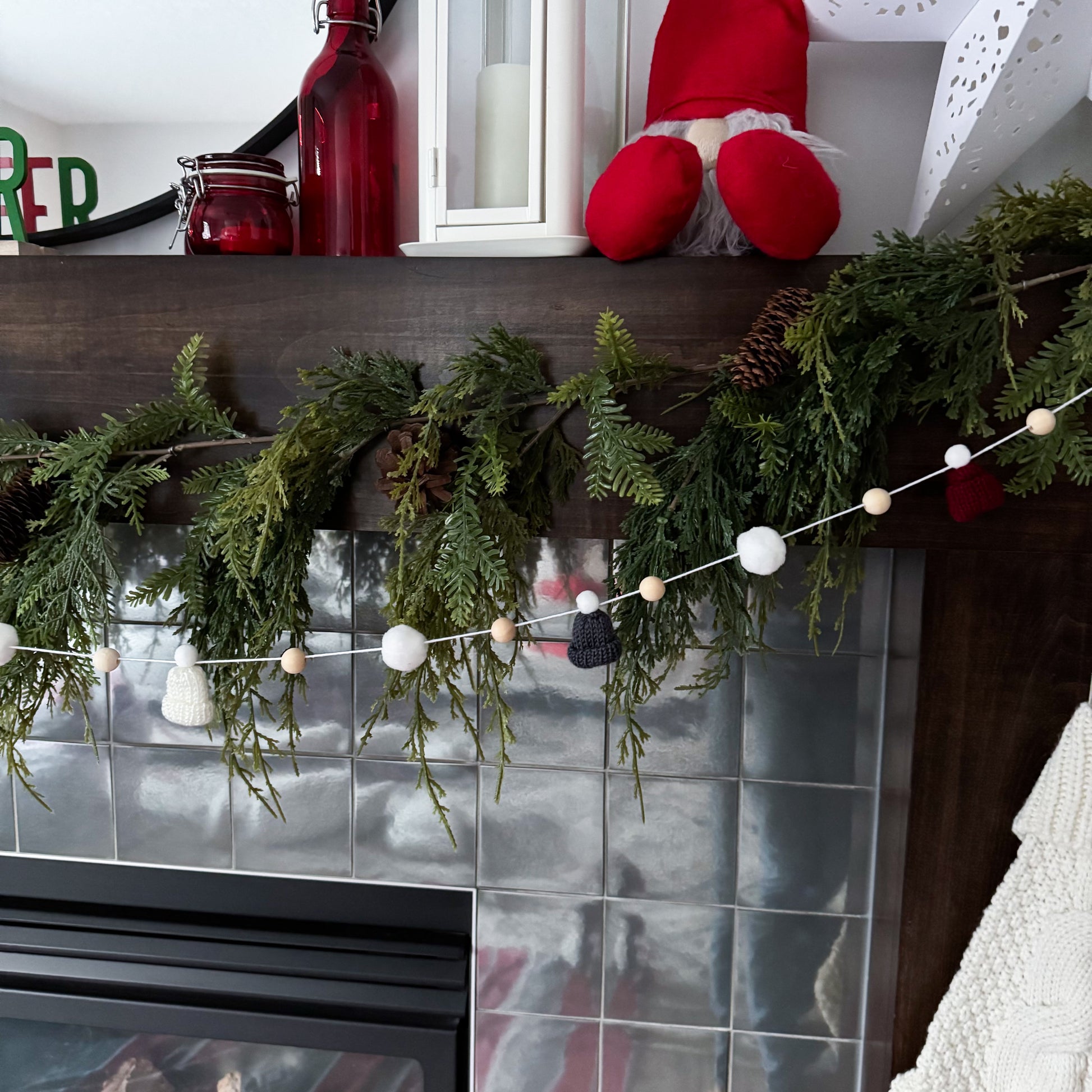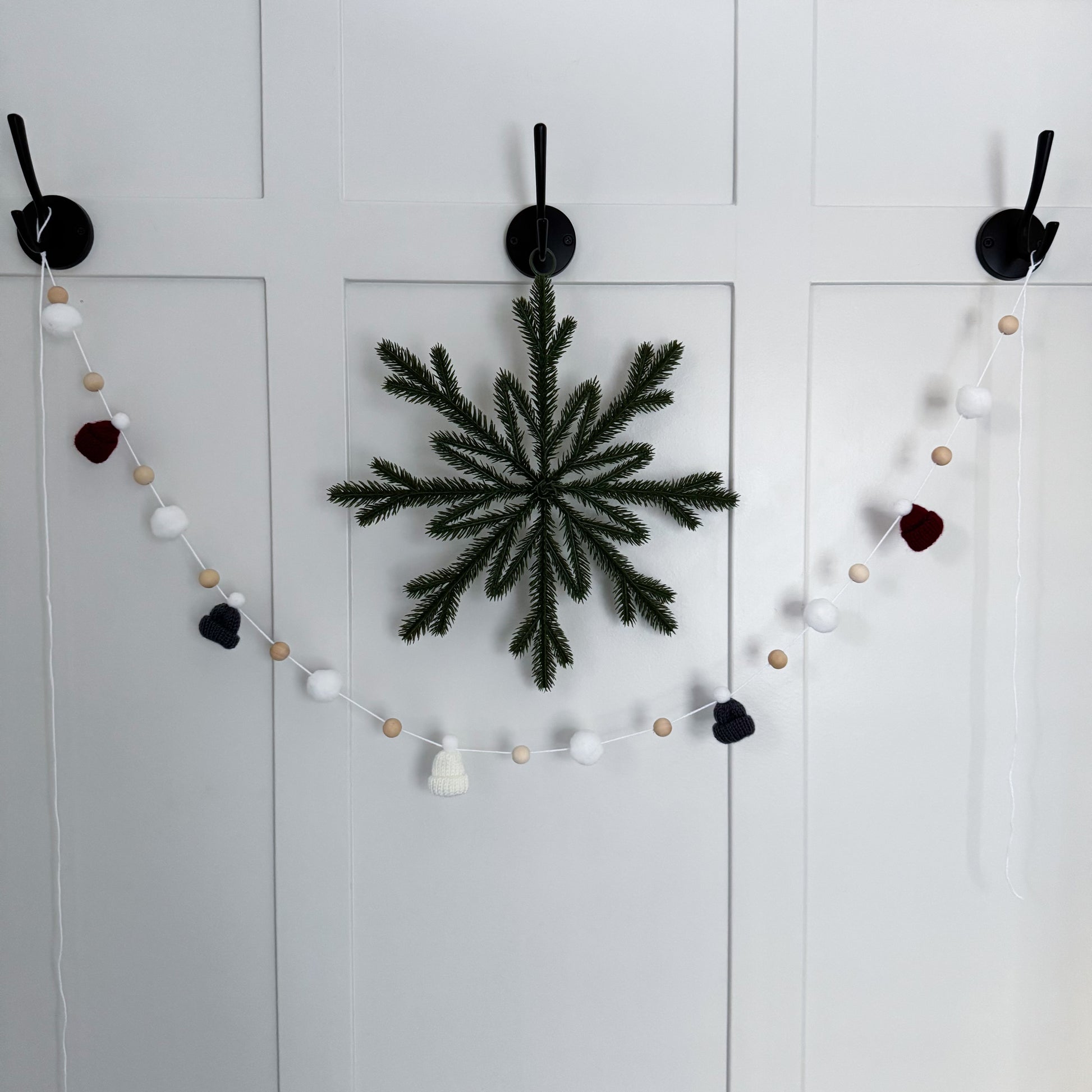 This modern and simple mini toque and wood bead garland will add the perfect touch to your decorating.