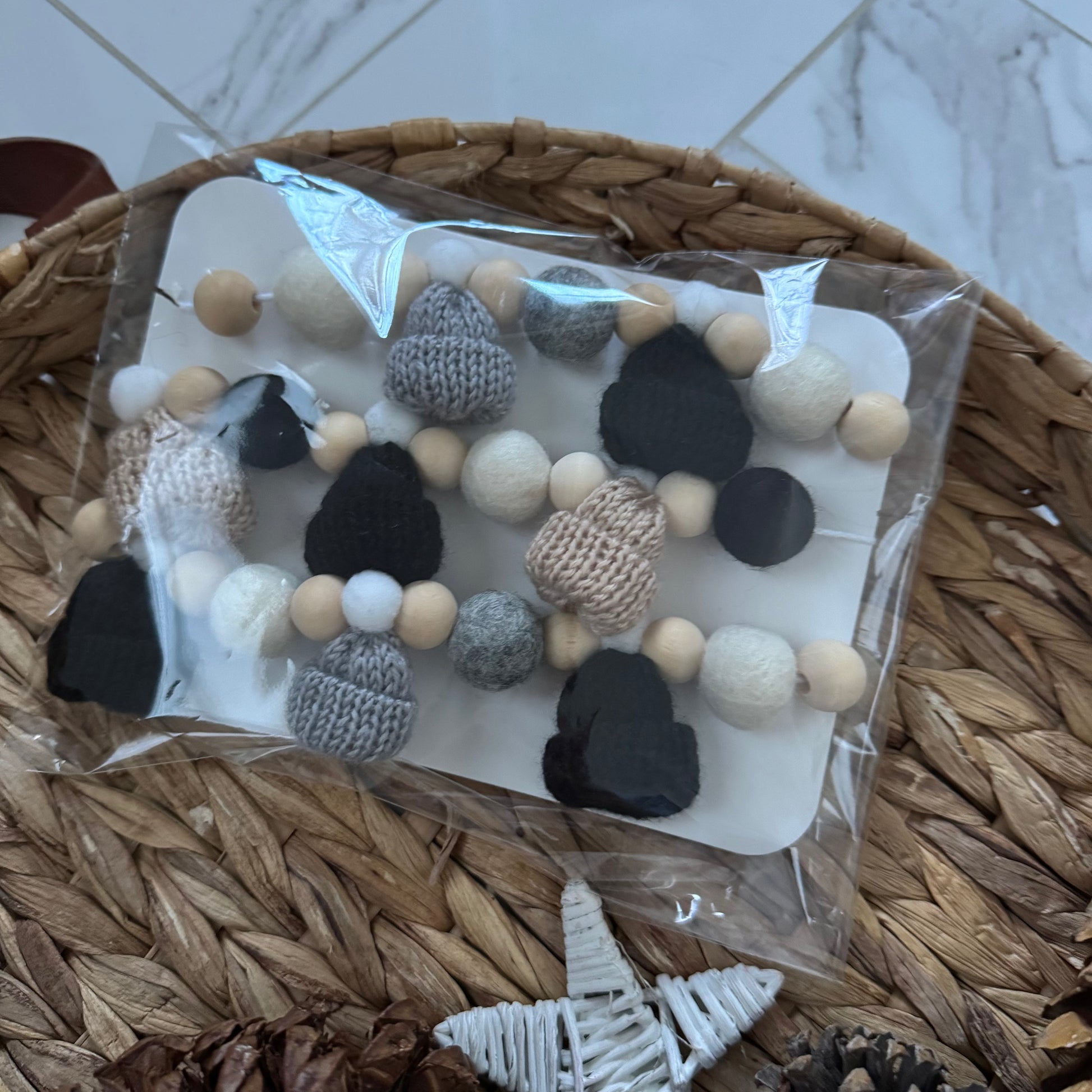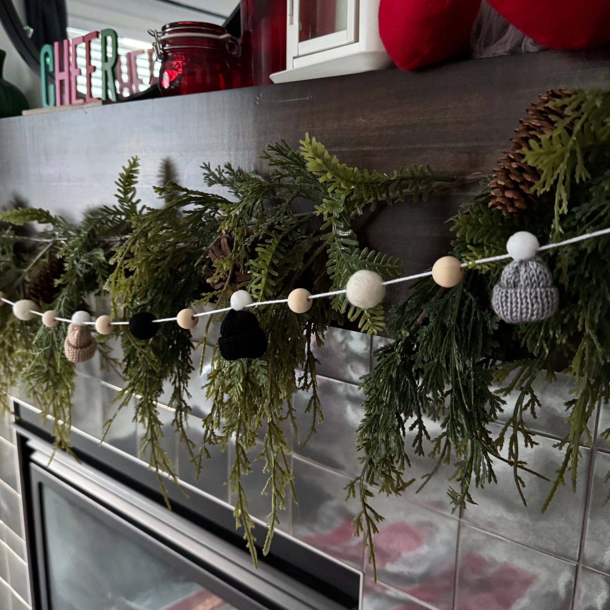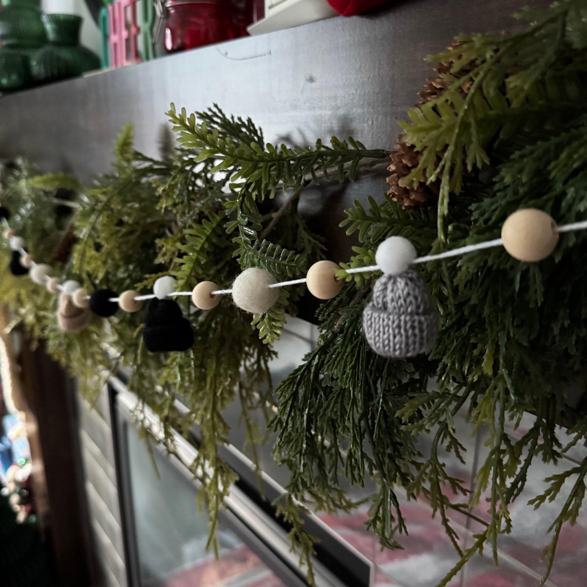 This modern and simple mini toque and wood bead garland will add the perfect touch to your decorating.