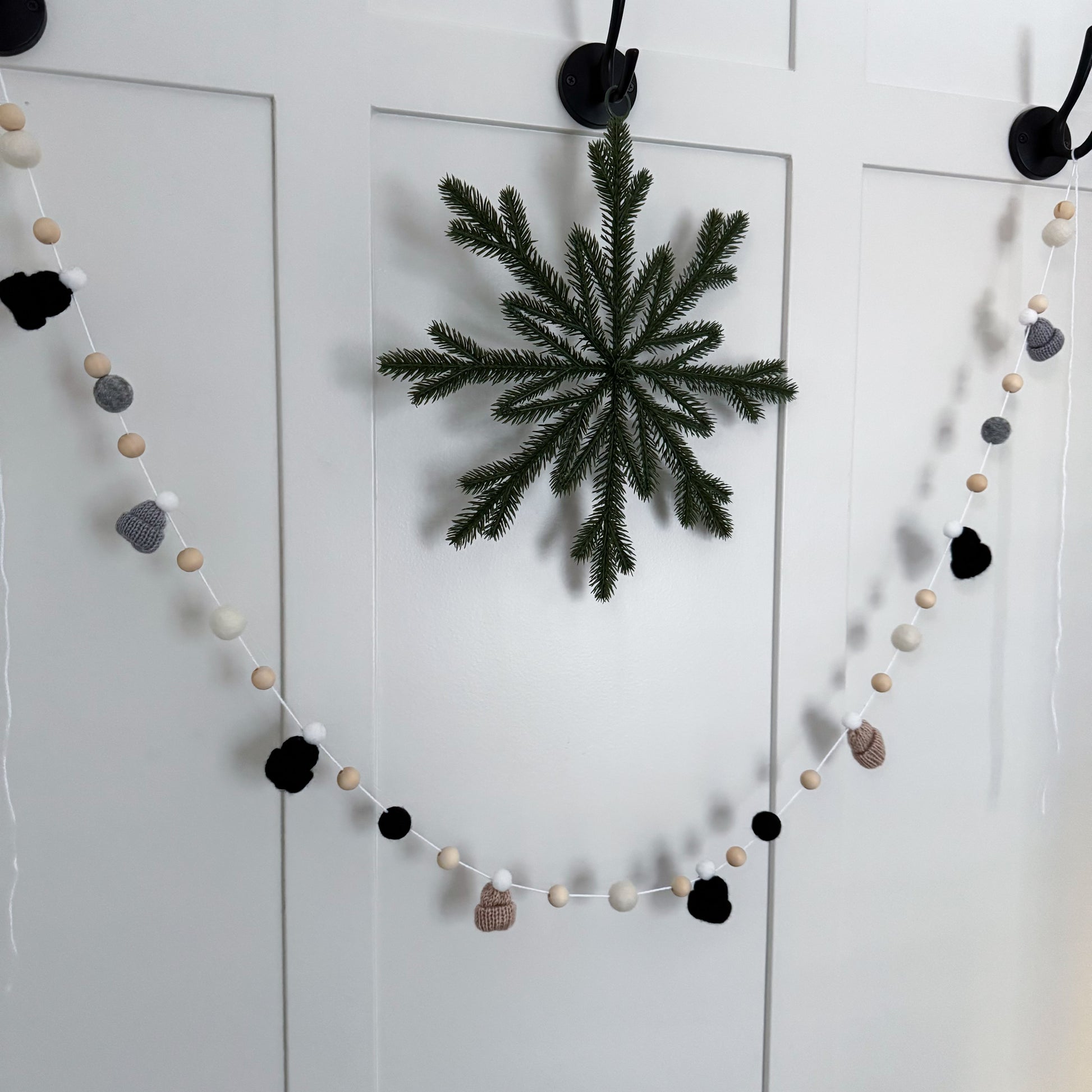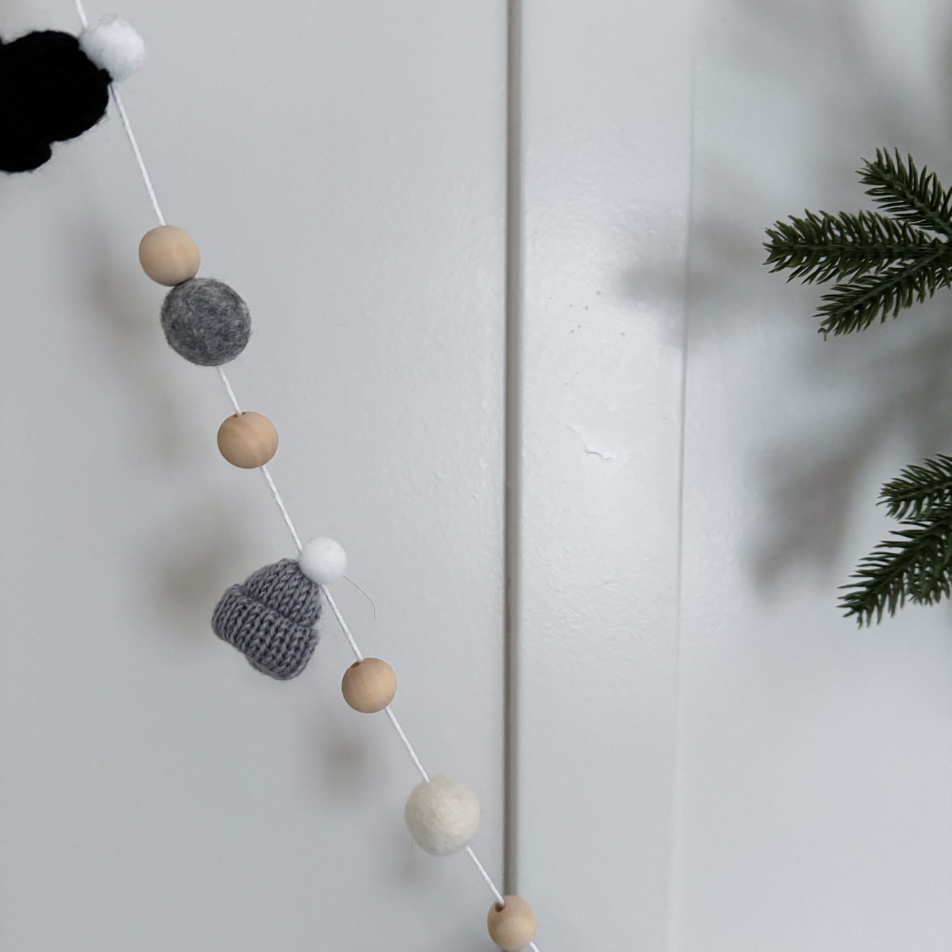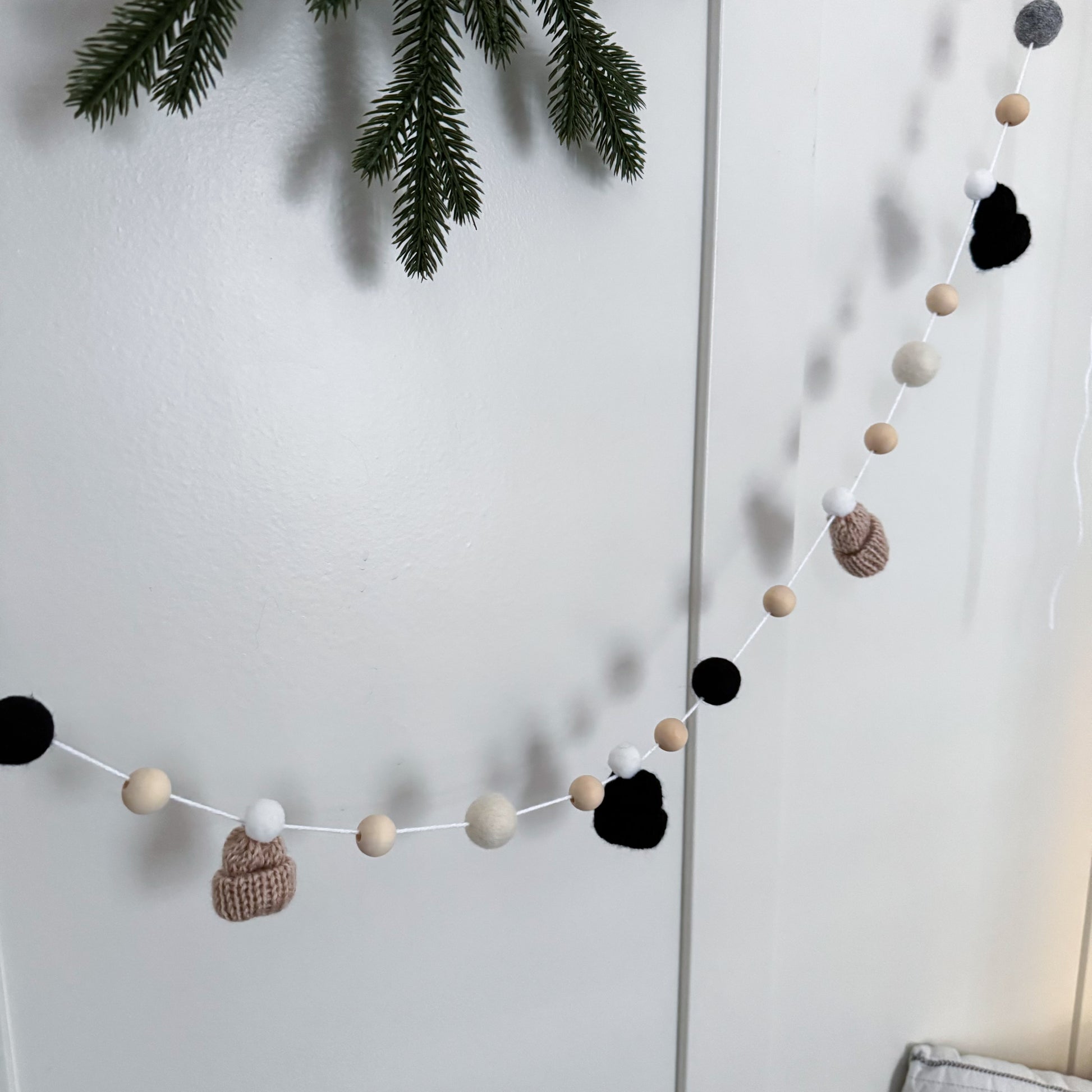 This modern and simple mini toque and wood bead garland will add the perfect touch to your decorating.