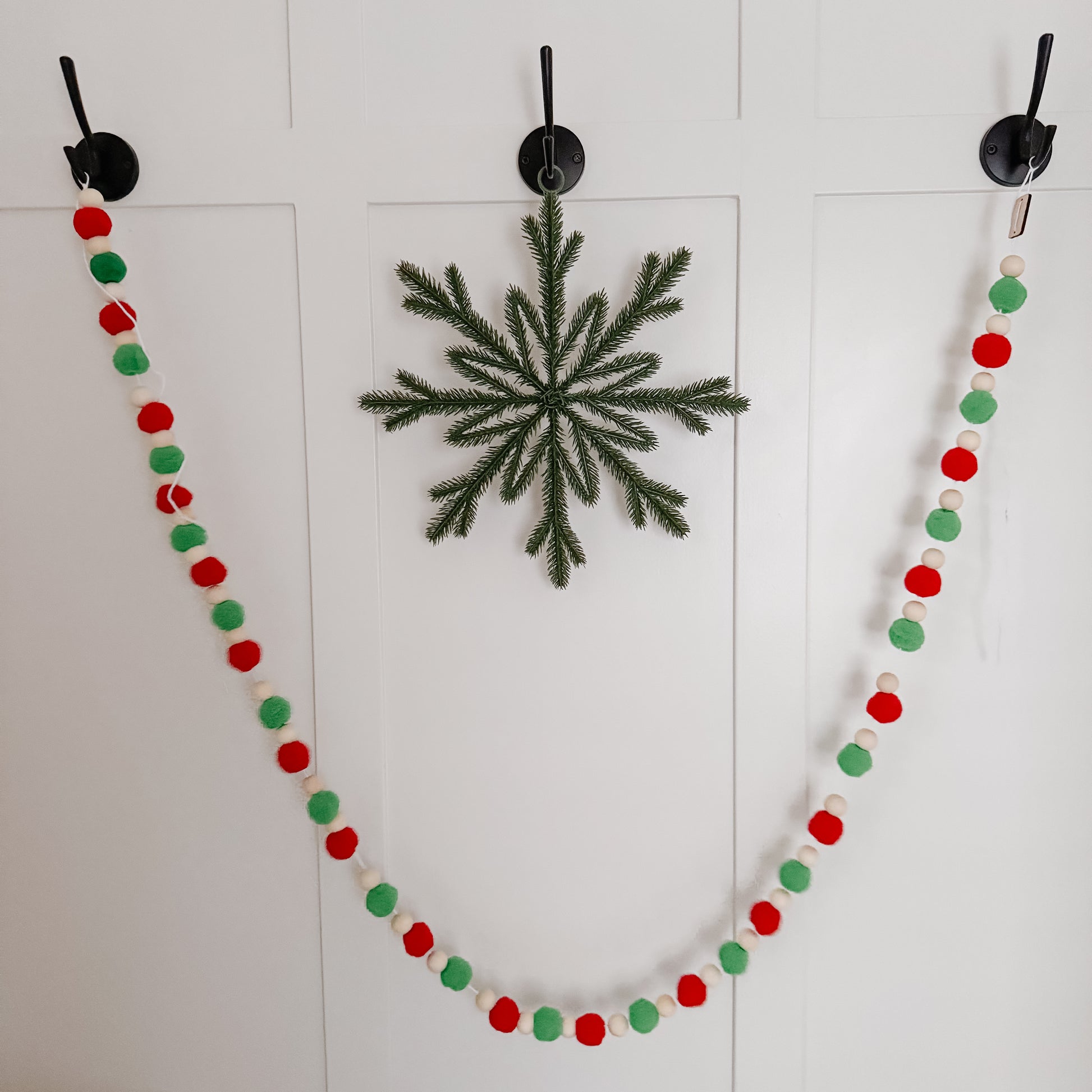 This modern and simple pompom and wood bead garland will add the perfect touch to your decorating.