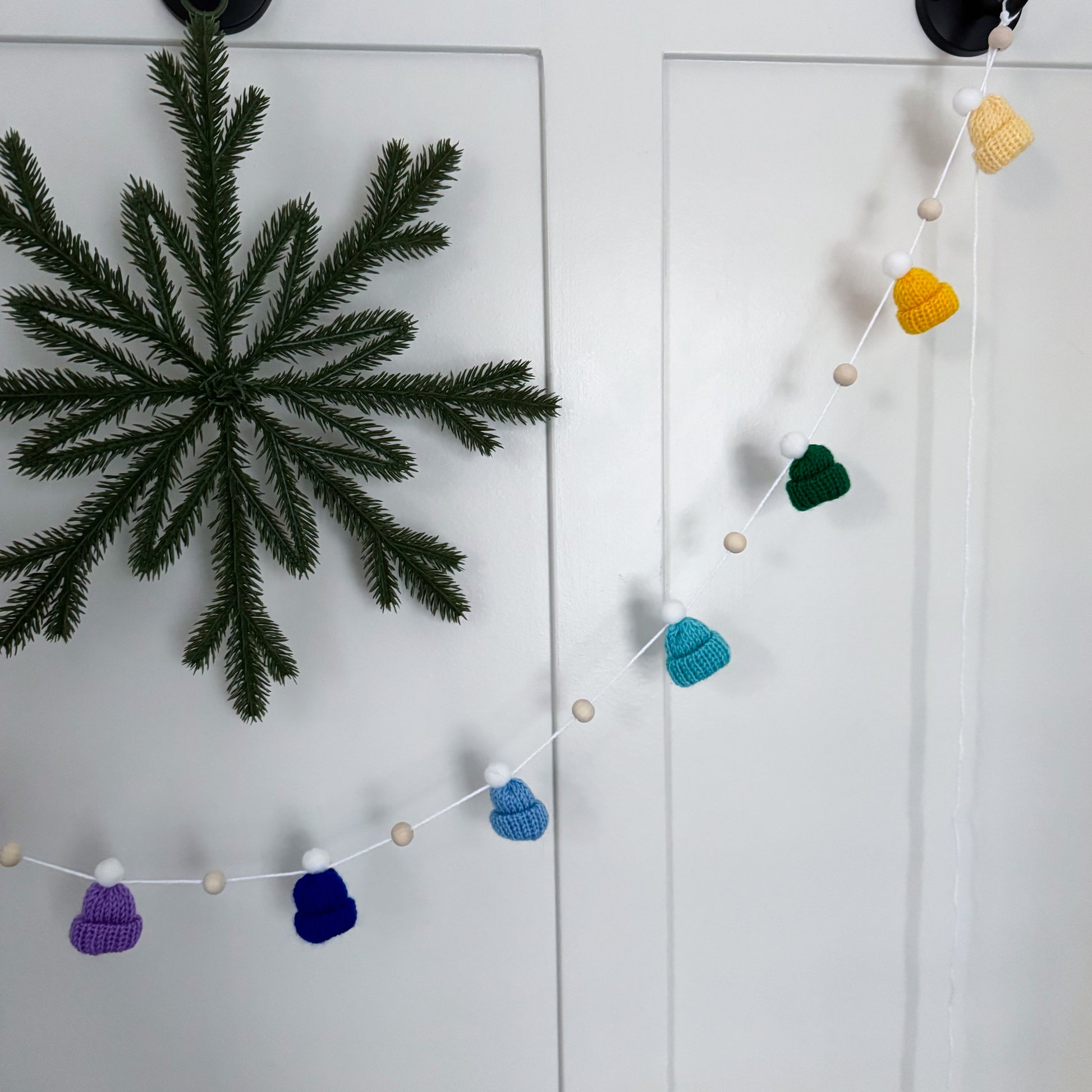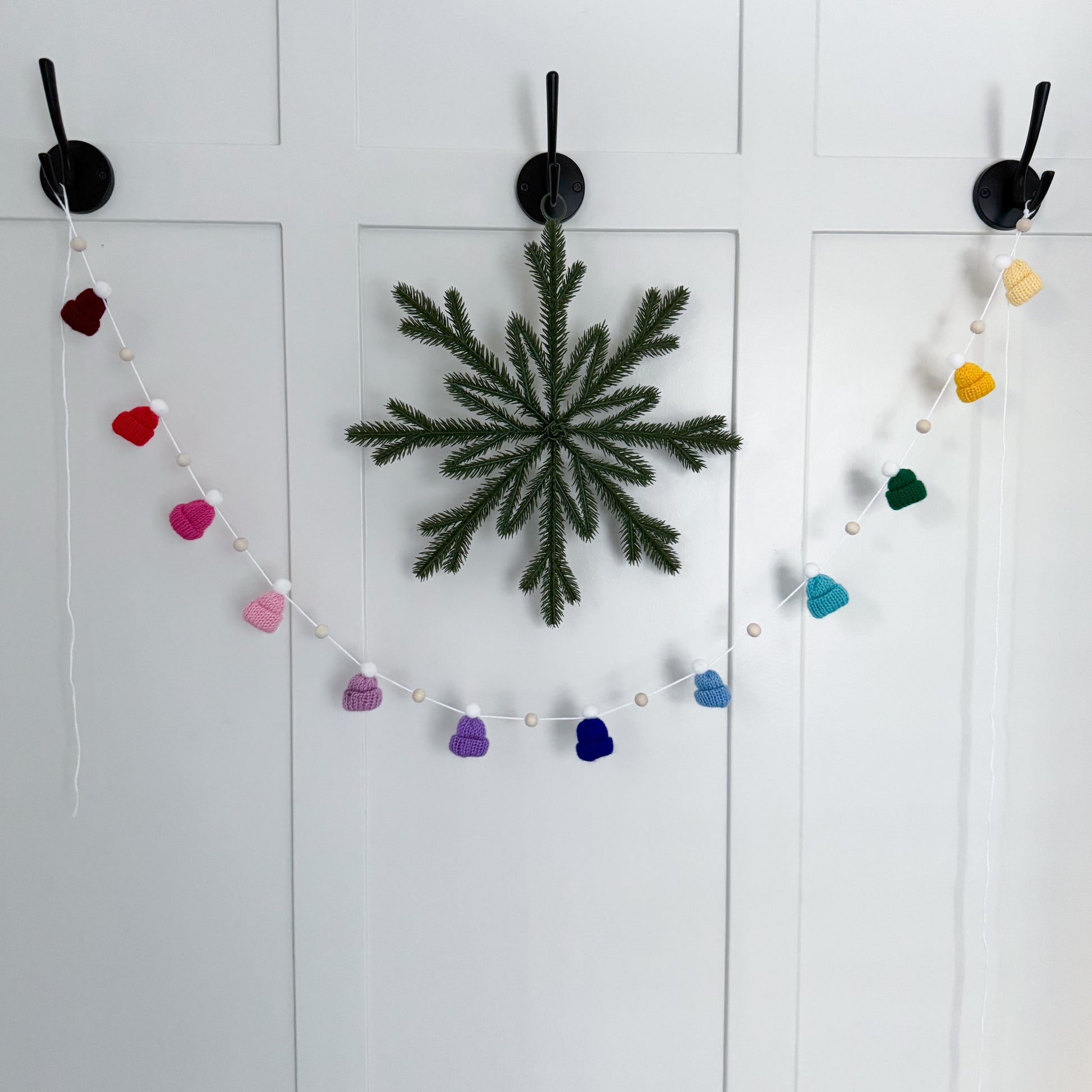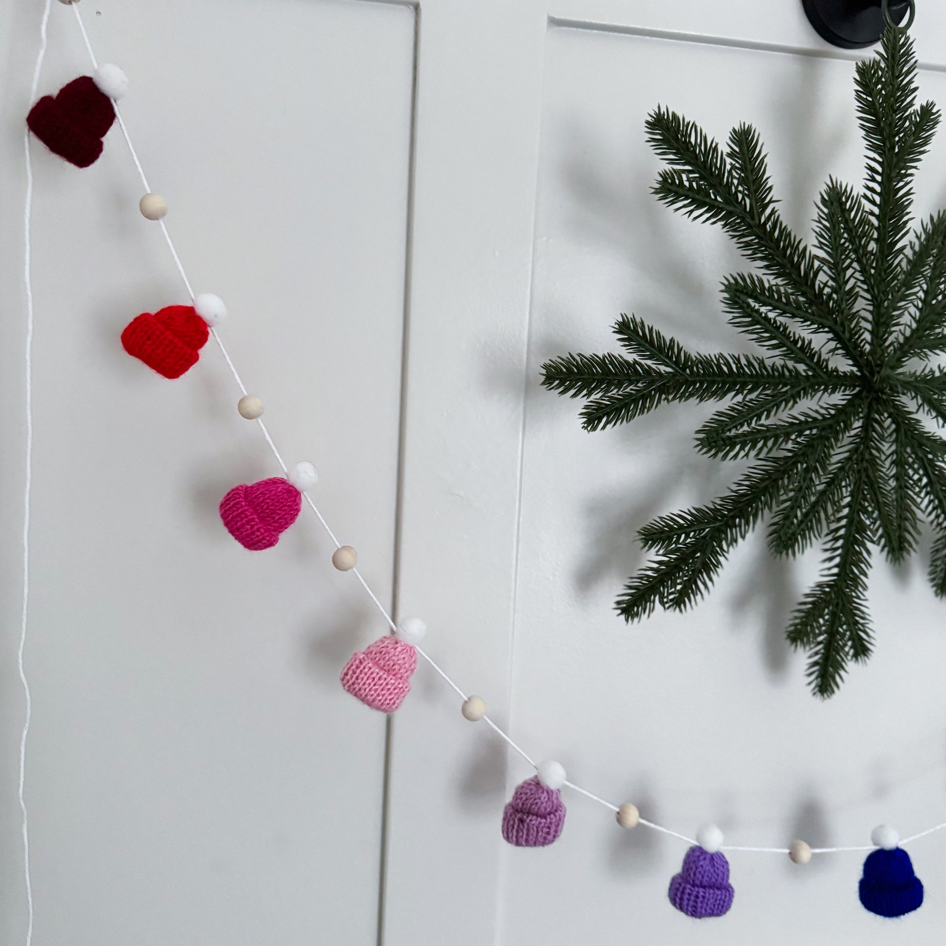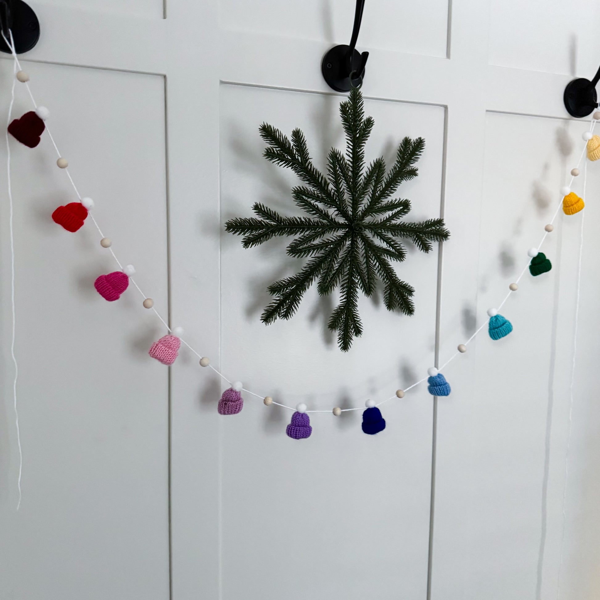 This modern and simple mini toque and wood bead garland will add the perfect touch to your decorating.