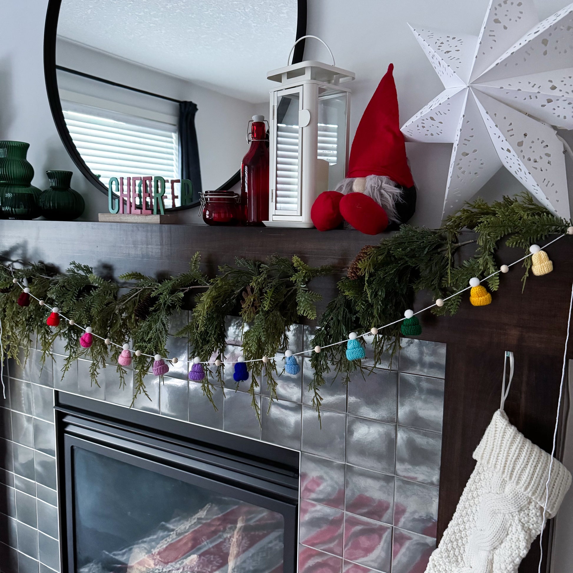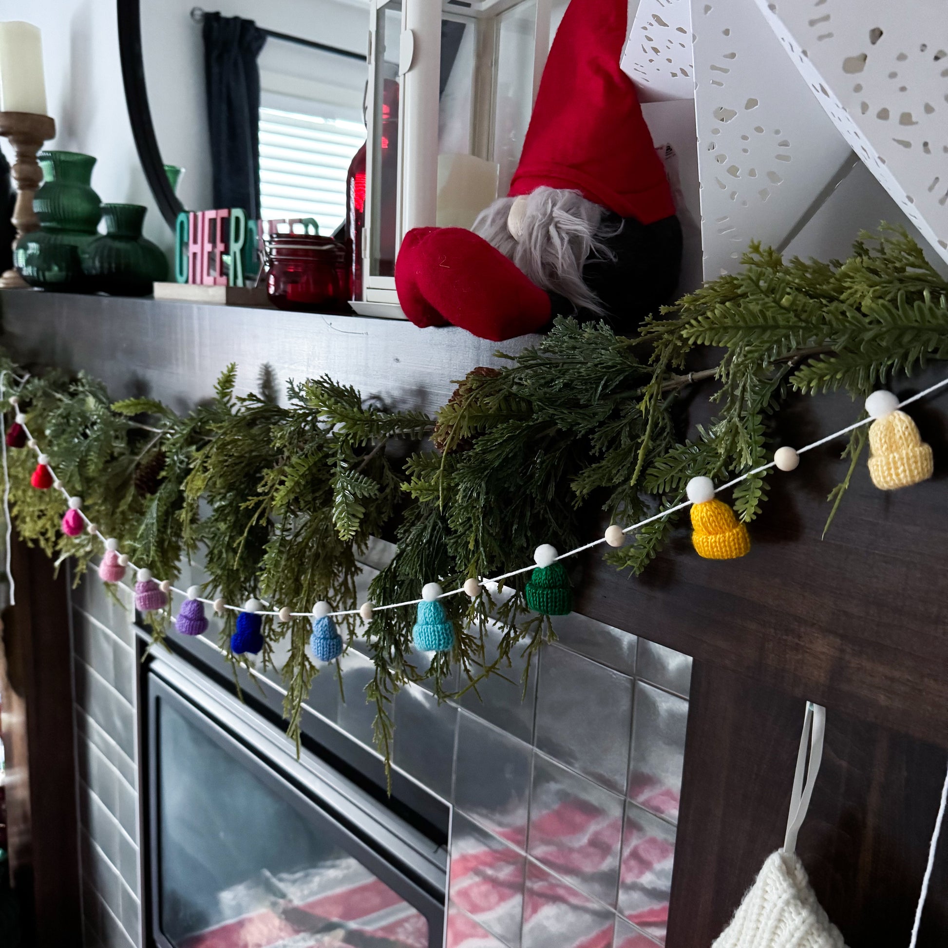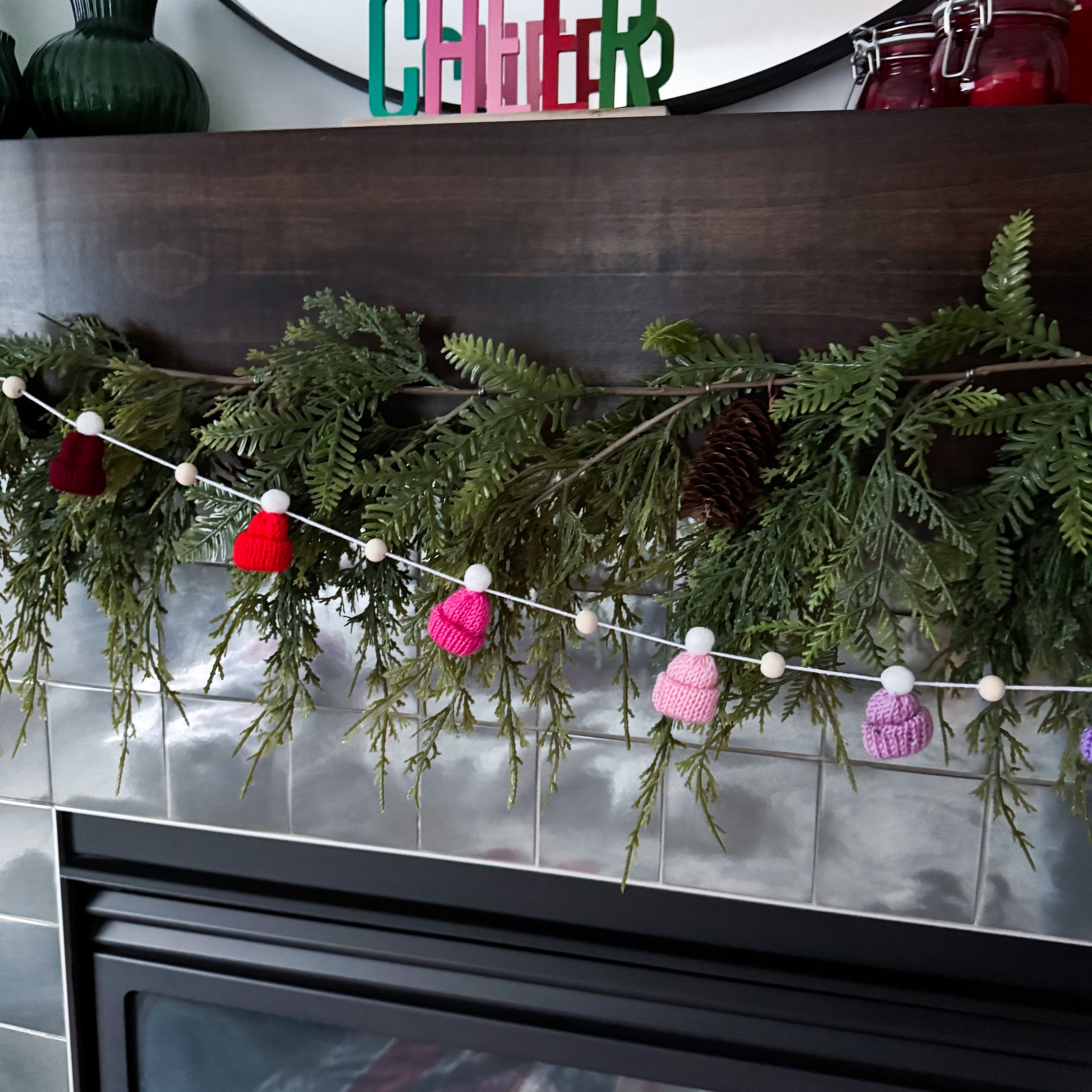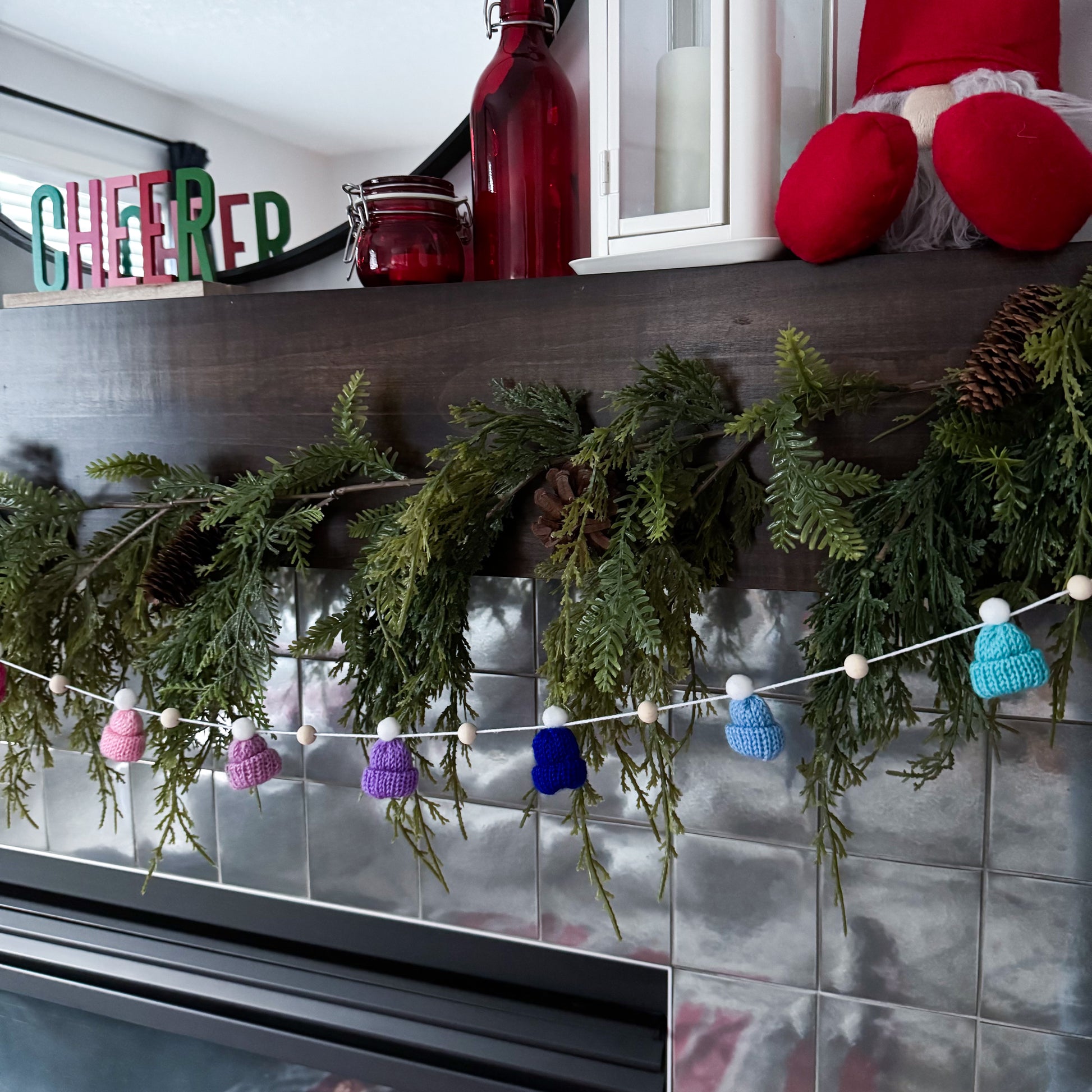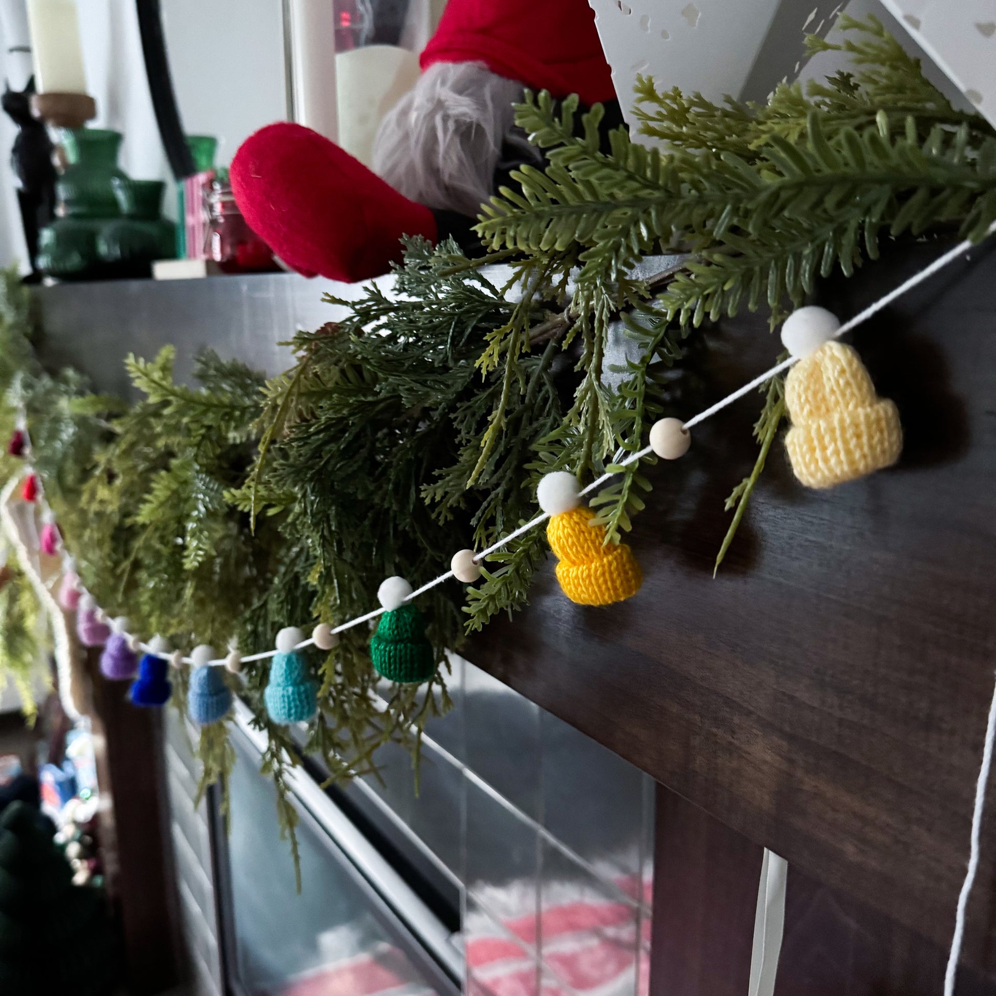 This modern and simple mini toque and wood bead garland will add the perfect touch to your decorating.