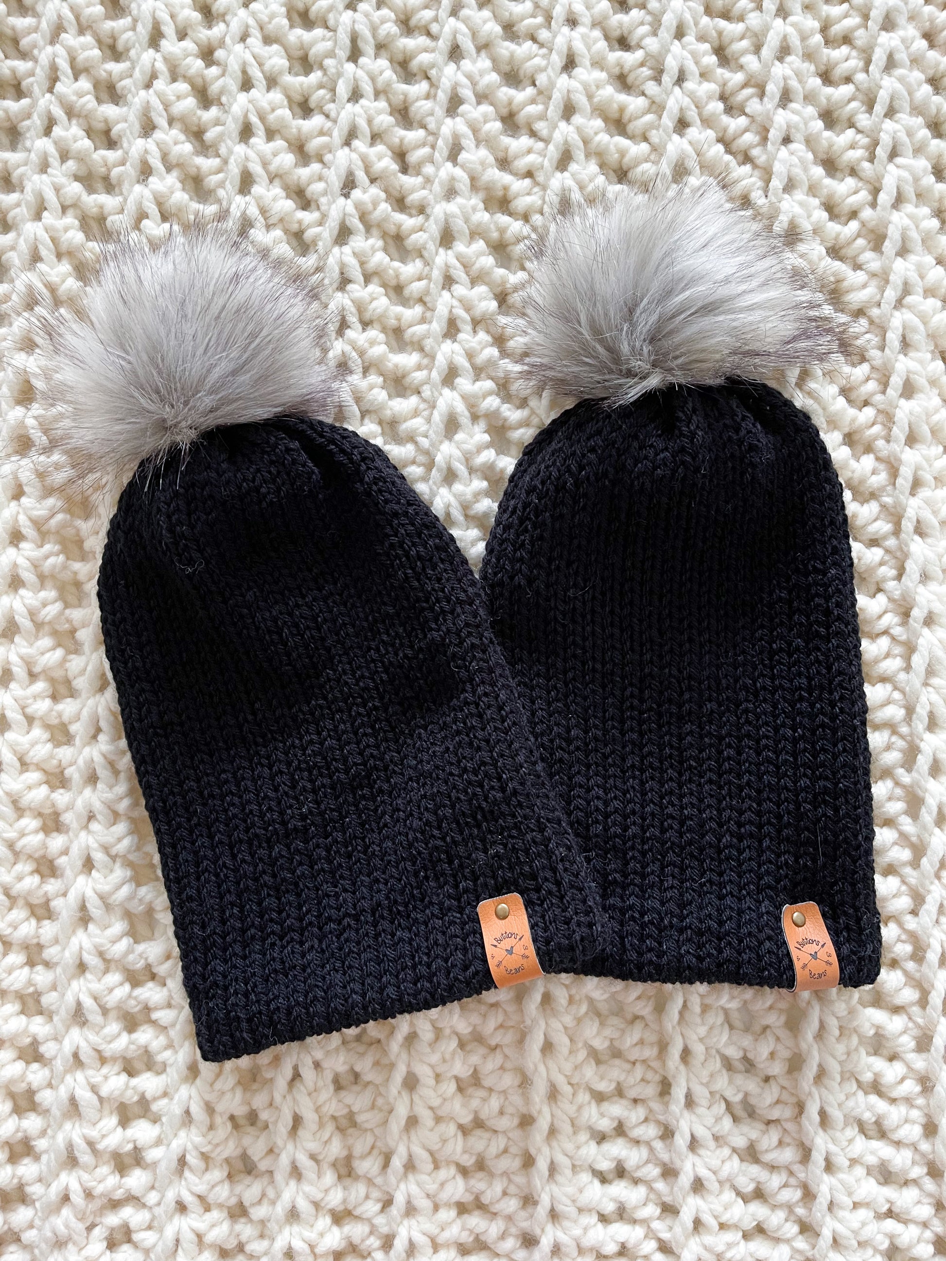 Reversa Black knit hat with pom pom. Don’t forget to tell us your favourite pompom colour in the notes when you check out!