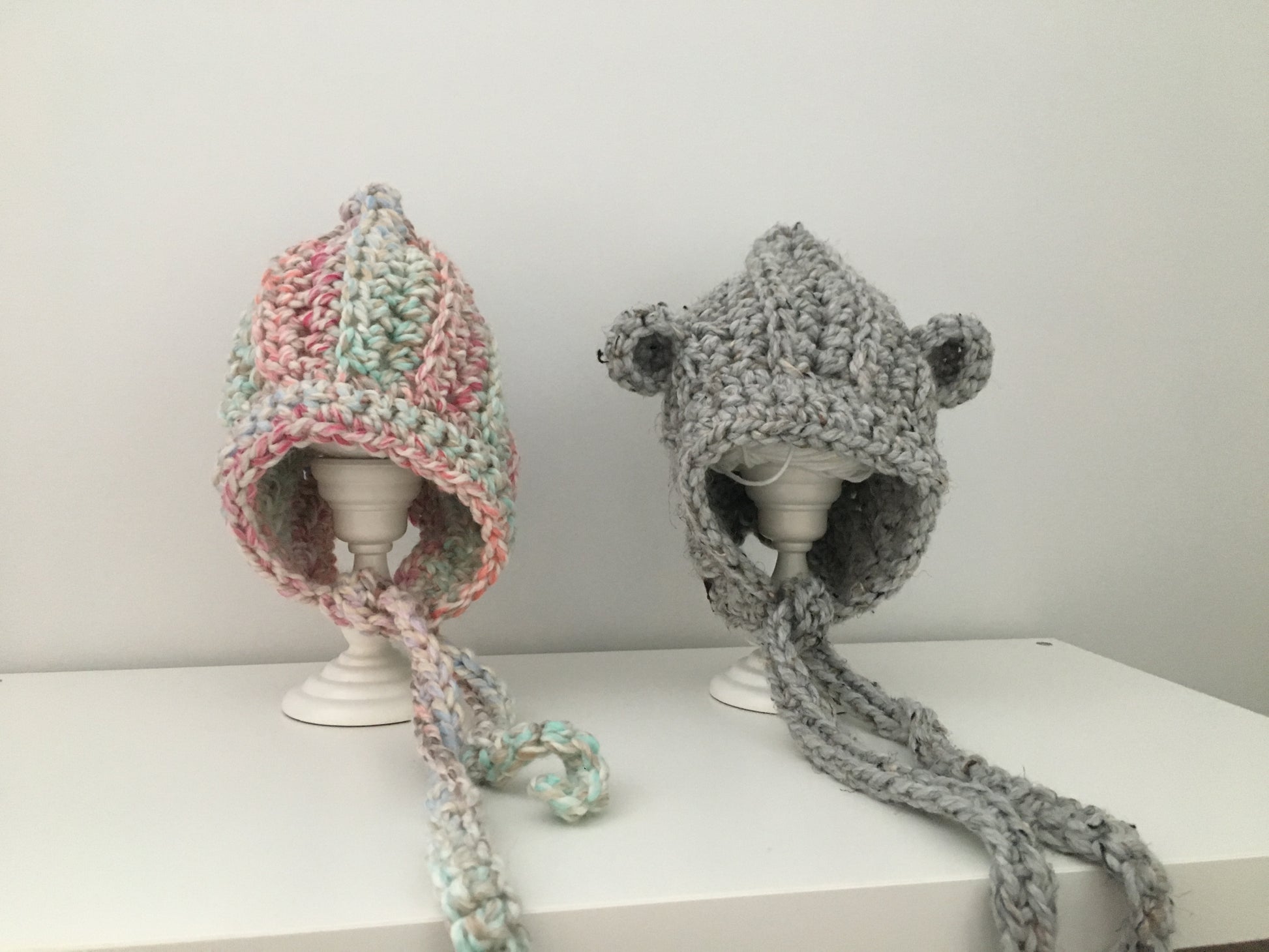 Bear Pixie Bonnet | Grey Crochet Winter Hat